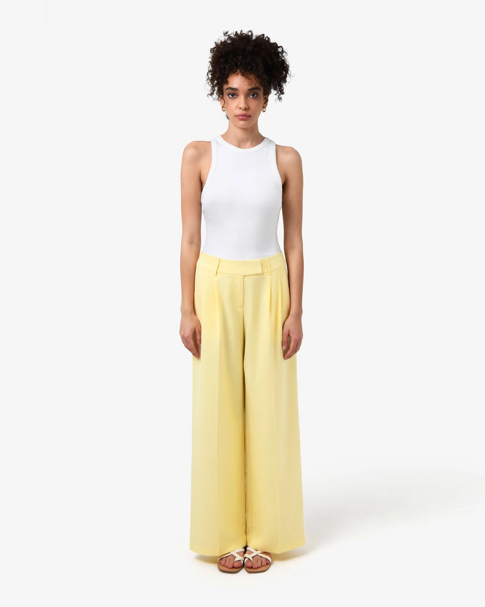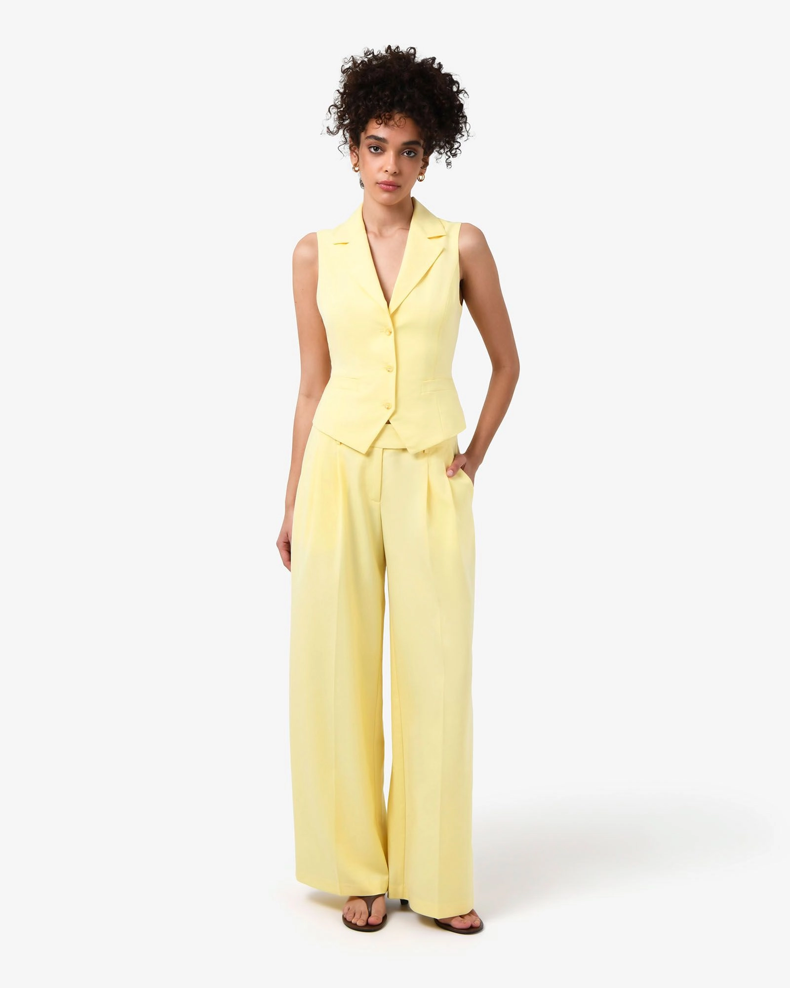The Amera 2 Wide Leg Pants is a high-rise pant with a fixed waistband and belt loops. Featuring functional side pockets, the pant offers a straight wide-leg silhouette and front double pleats for structure. The pant can be worn with basic tops and blouses or style with the matching Amera Collared Vest to complete the set.