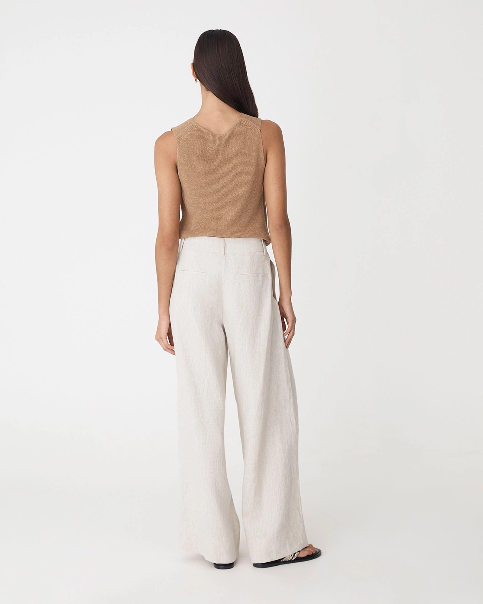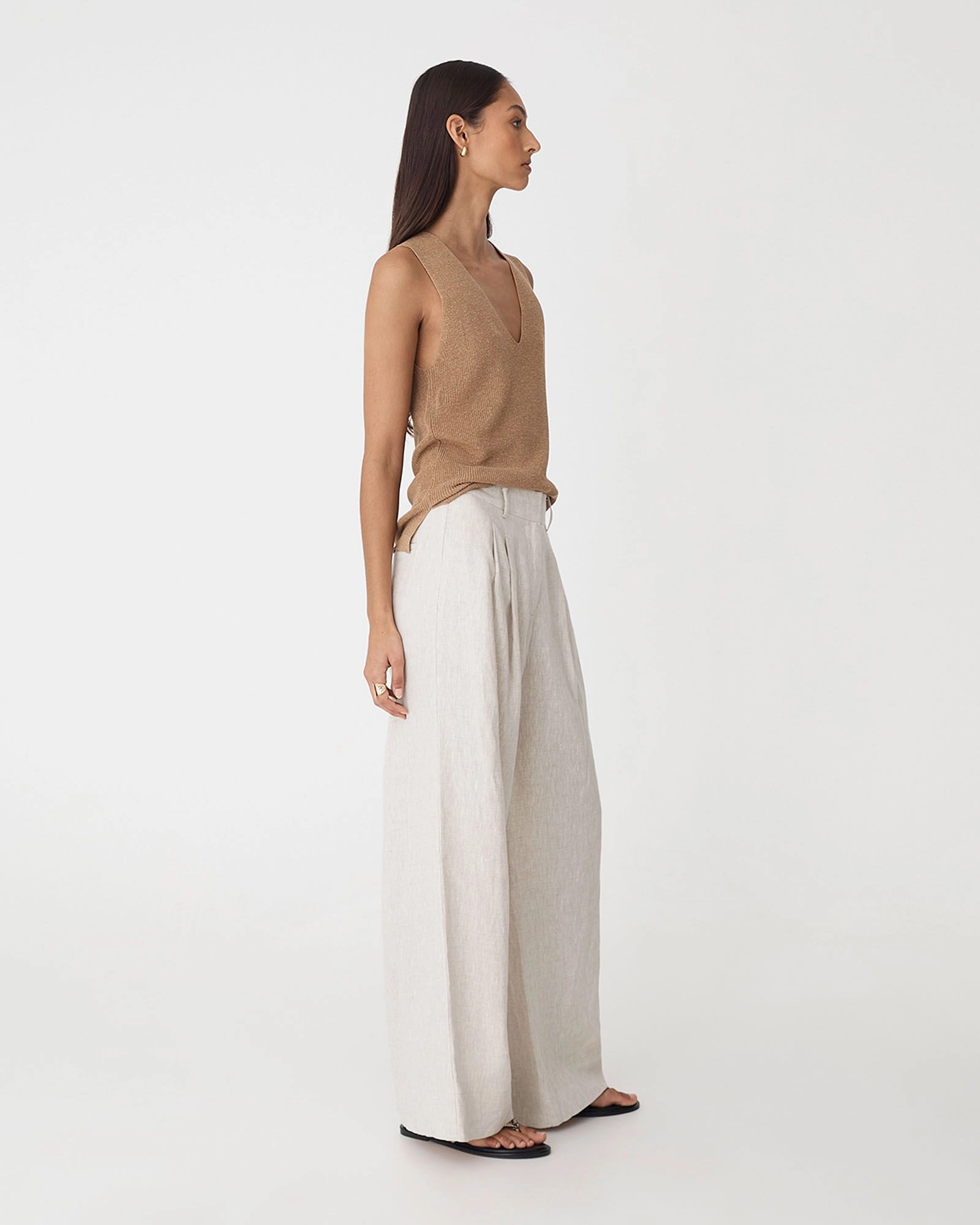 The Ami Wide Leg Linen Pants blend comfort and sophistication with a high-rise waist, relaxed wide-leg silhouette, and front pleats for a modern, tailored finish. Designed from 100% breathable linen, they pair seamlessly with the matching Ami V-Neck Linen Vest and your favourite summer tops.