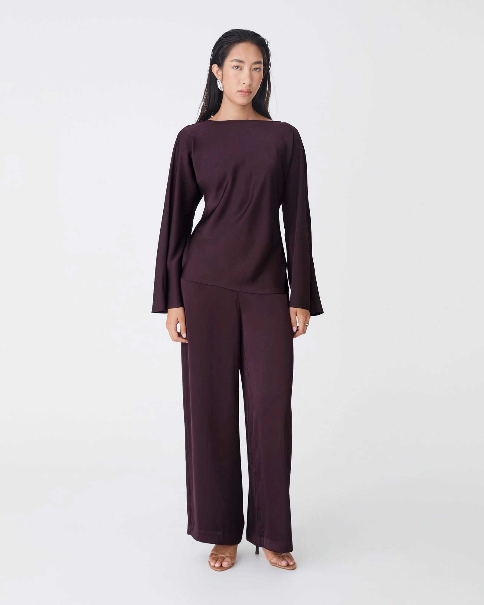 The Asma Satin Wide Leg Pants flow beautifully from hip to hem, crafted in a soft satin fabric that catches the light with a subtle sheen. The flat-front waistband and discreet side zip keep the silhouette clean, while the relaxed wide leg adds movement and ease. Pair with the Asma Satin Bias Cut Top or a fitted blouse for a chic, modern ensemble.