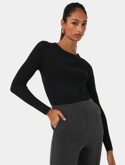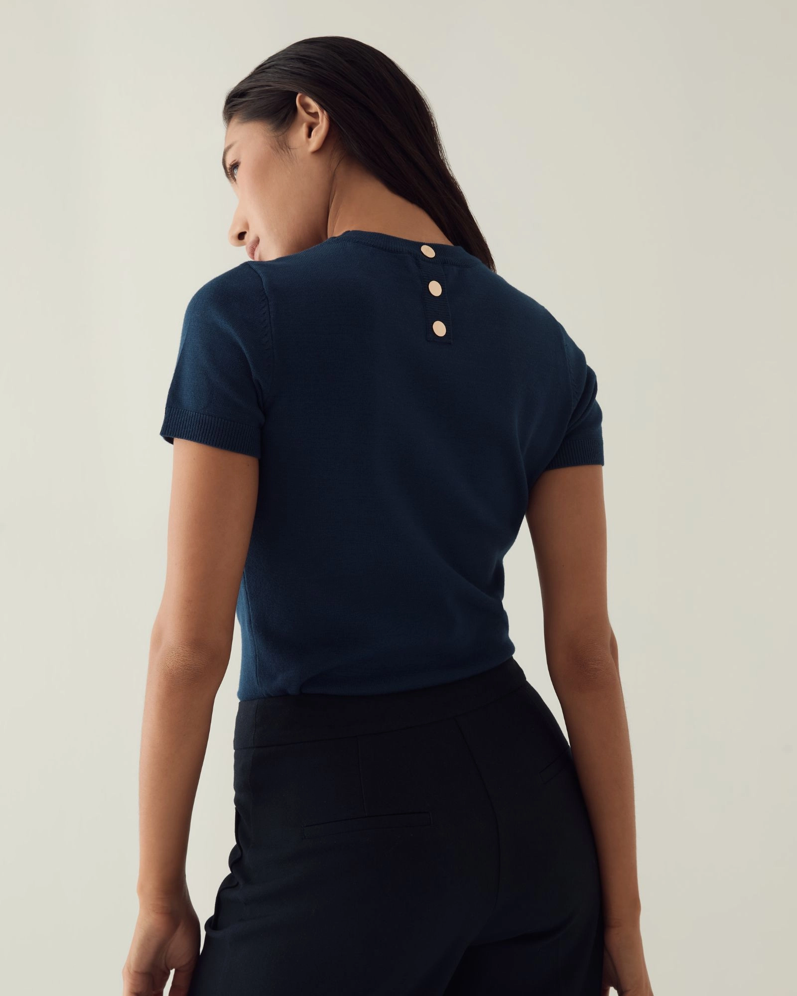 A genuine office staple, and popular for a reason. Fitted with a crew neckline, ribbed edges, and subtle gold-tone back button, it’s crafted from stretch knit that keeps its shape all day.