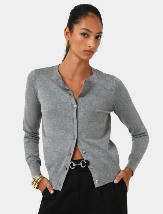 Cut from a soft, textured ribbed knit, it features a flattering V-neckline with button-up fastening and long sleeves for everyday ease. Ribbed cuffs and hem keep the shape sharp, while natural stretch gives it that relaxed, throw-on feel.