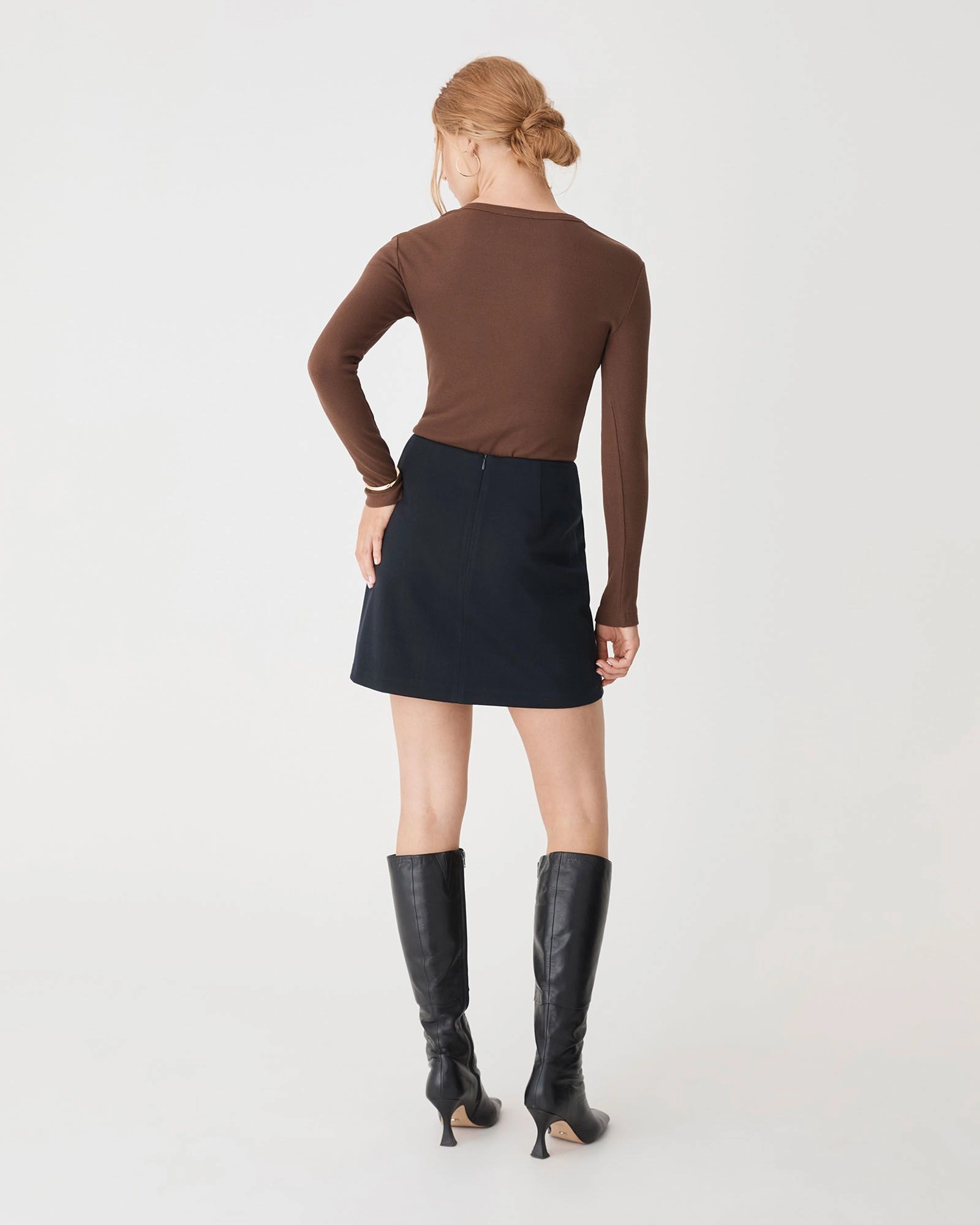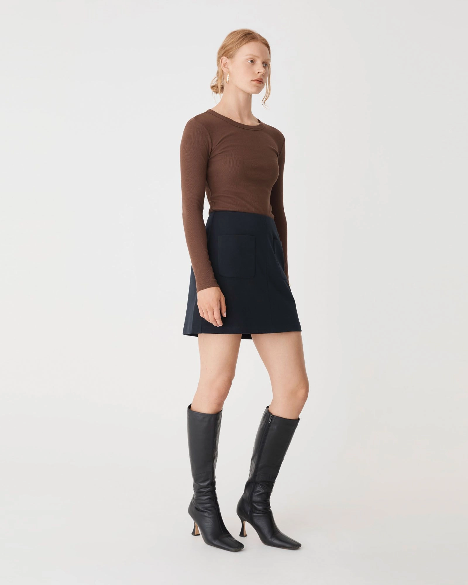 The Bridget Mini Skirt is slightly textured with a soft finish. It features front patch pockets with a centre seam for a clean silhouette. Fully lined for comfort, it’s an easy piece to style from day to night. Pair with knitwear or fitted tops for a balanced, cohesive look.