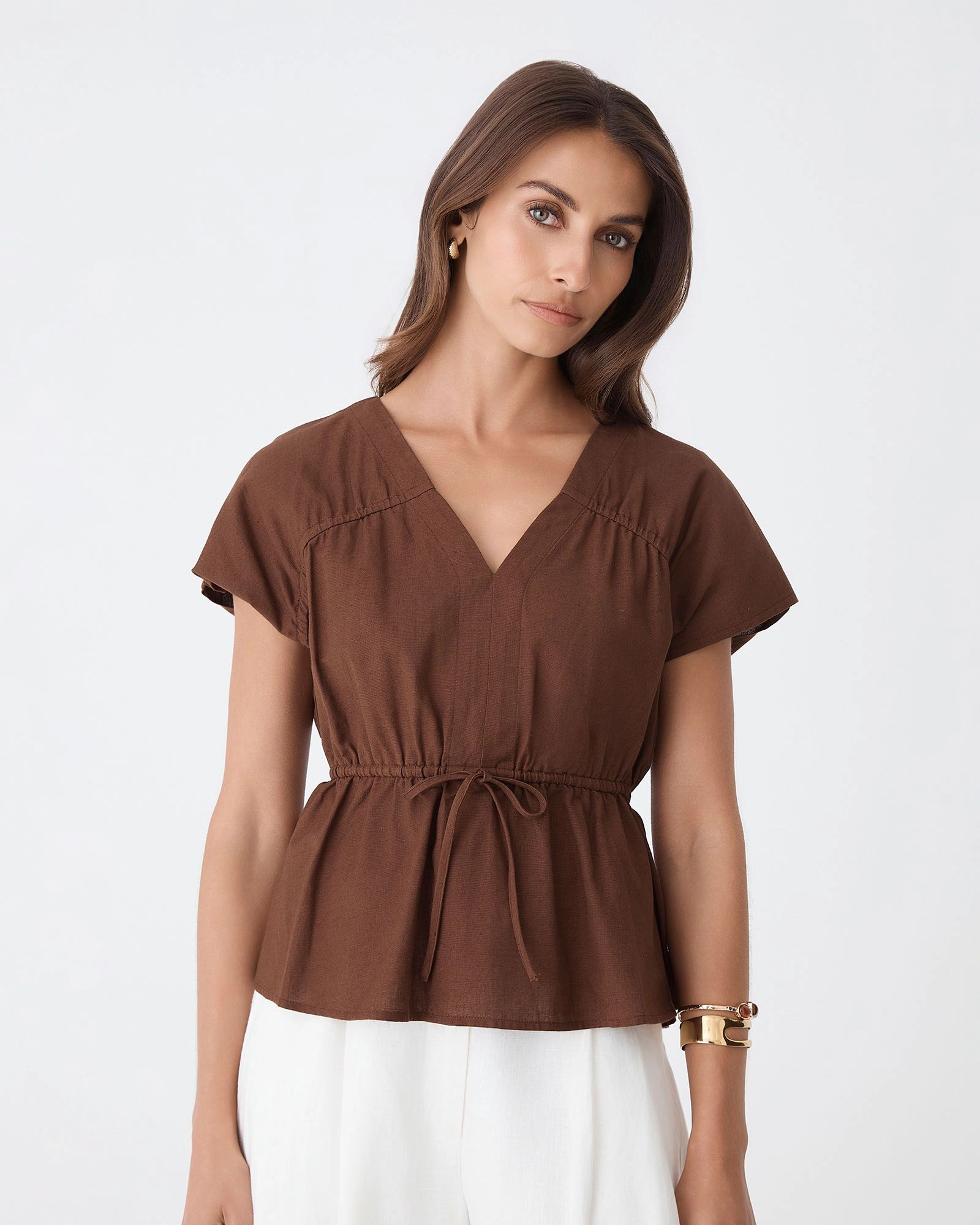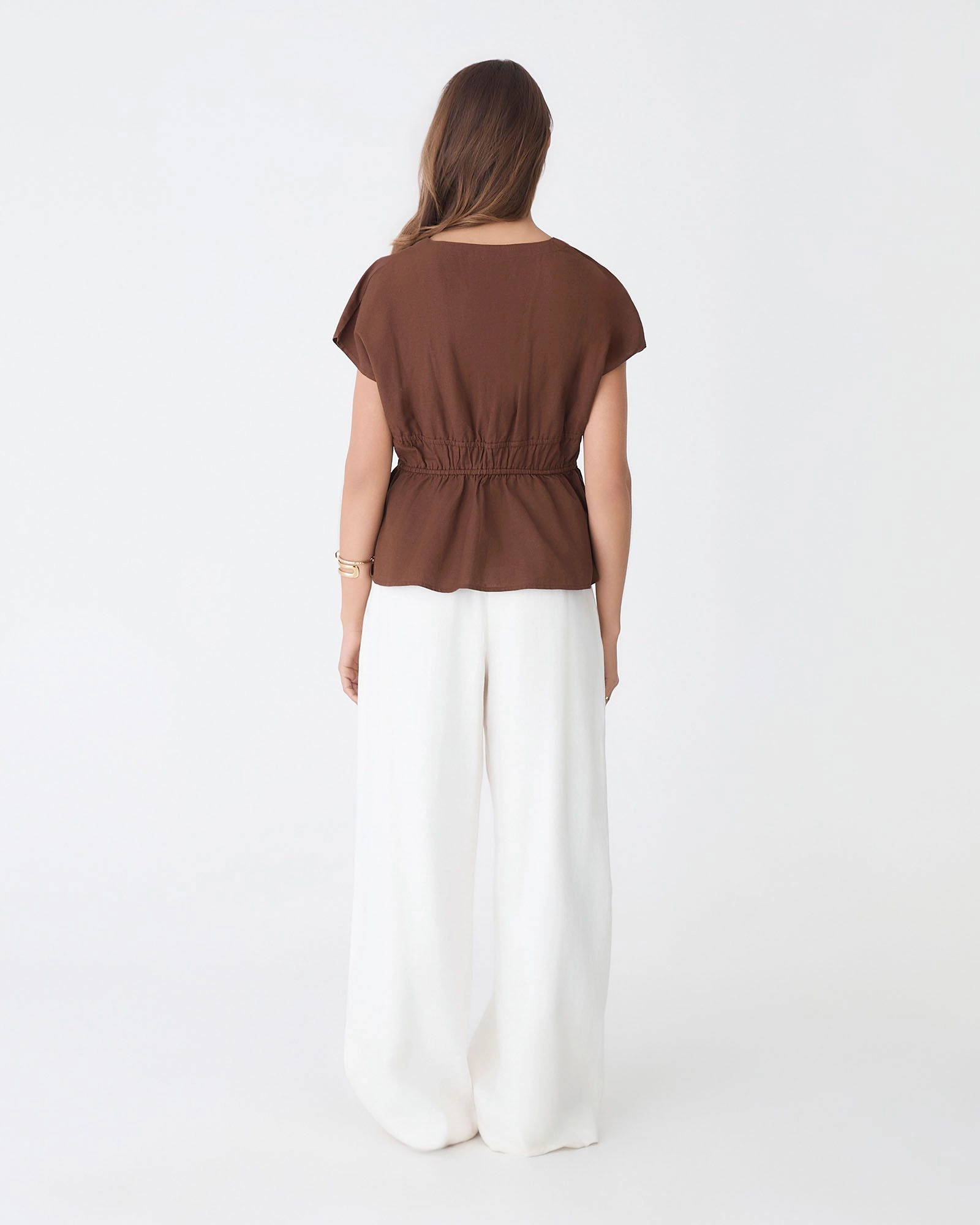 Enjoy relaxed summer comfort with the Bronte Cotton Drawstring Top, made from 100% cotton for comfortable wear. Designed with a flattering V-neckline, cap sleeves, and an adjustable drawstring waist, it offers the option of a defined silhouette or a relaxed fit. Simple and fresh, it pairs perfectly with the matching Bronte Cotton Drawstring Pants for a coordinated summer set.