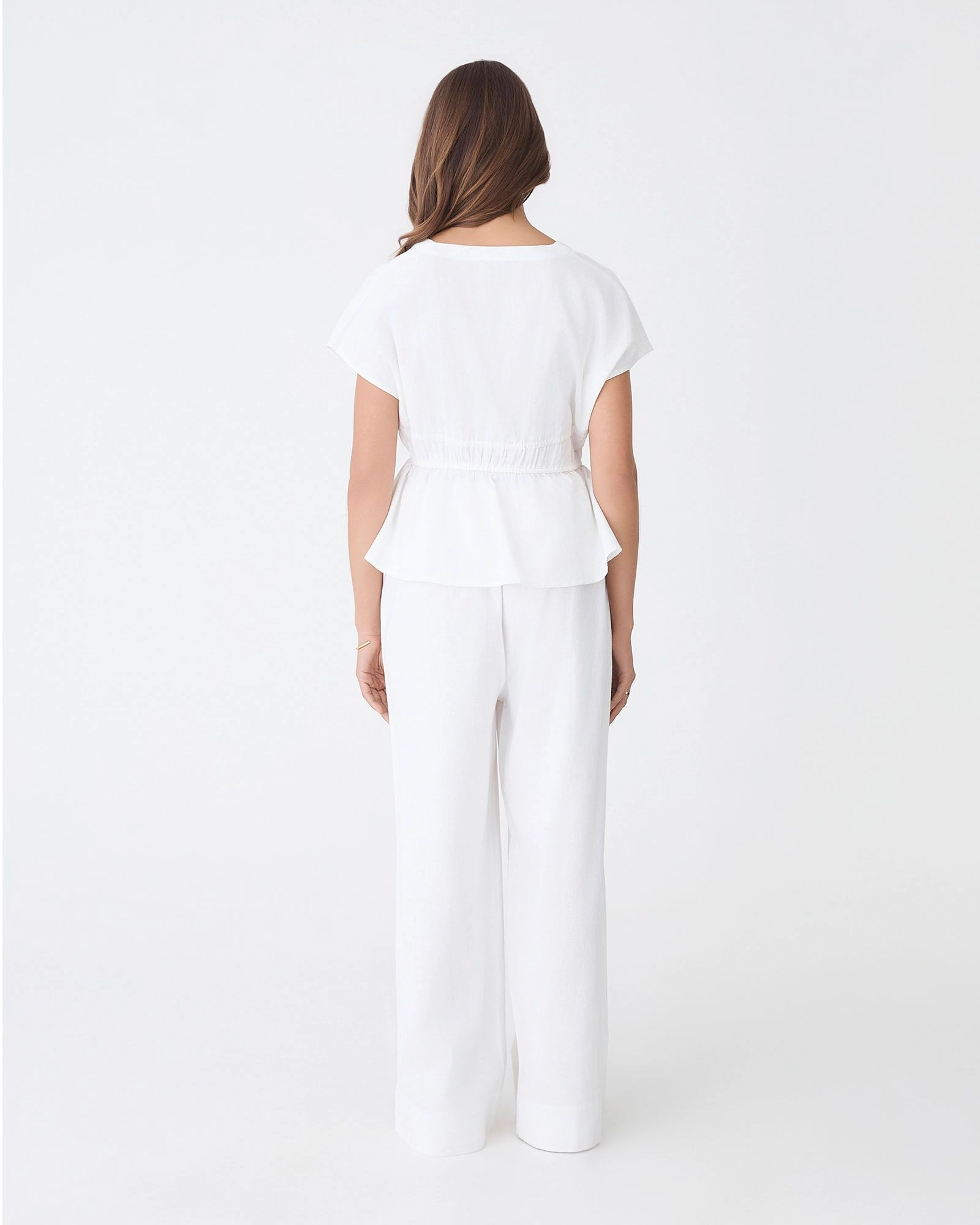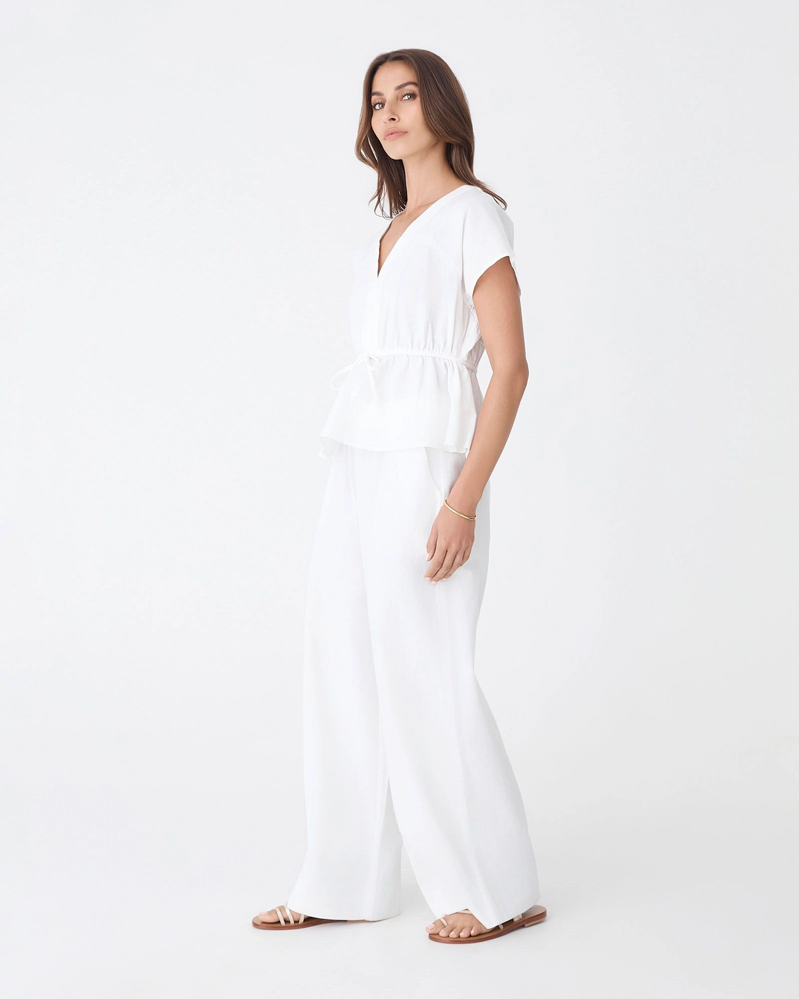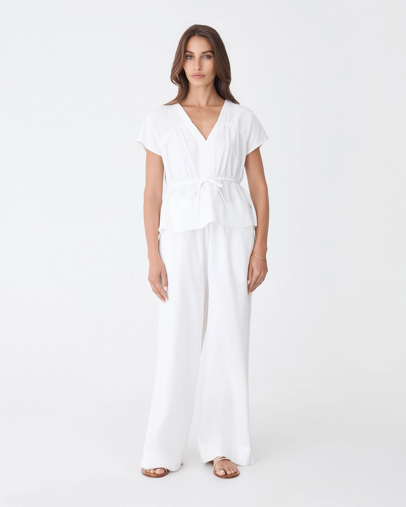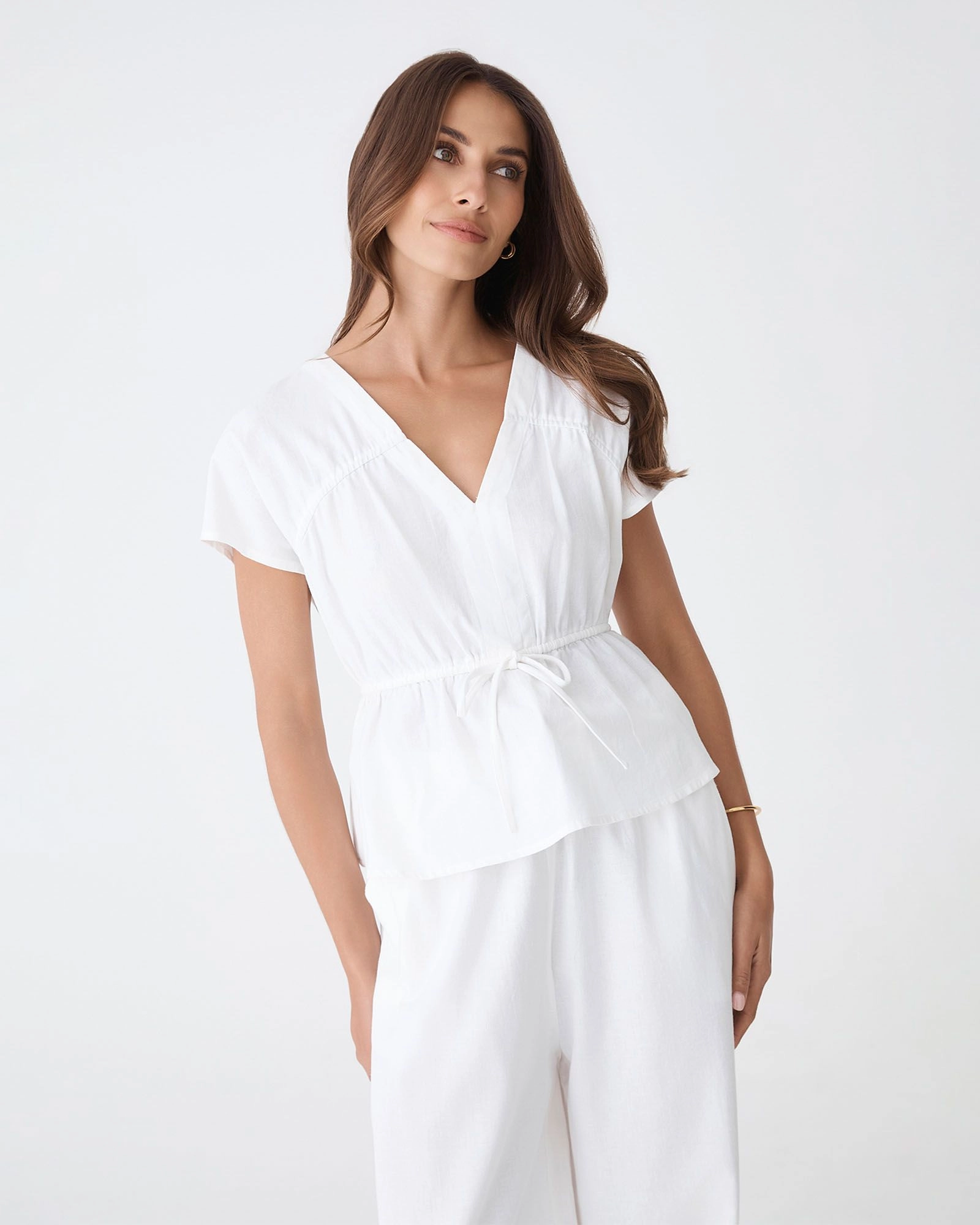 Enjoy relaxed summer comfort with the Bronte Cotton Drawstring Top, made from 100% cotton for comfortable wear. Designed with a flattering V-neckline, cap sleeves, and an adjustable drawstring waist, it offers the option of a defined silhouette or a relaxed fit. Simple and fresh, it pairs perfectly with the matching Bronte Cotton Drawstring Pants for a coordinated summer set.