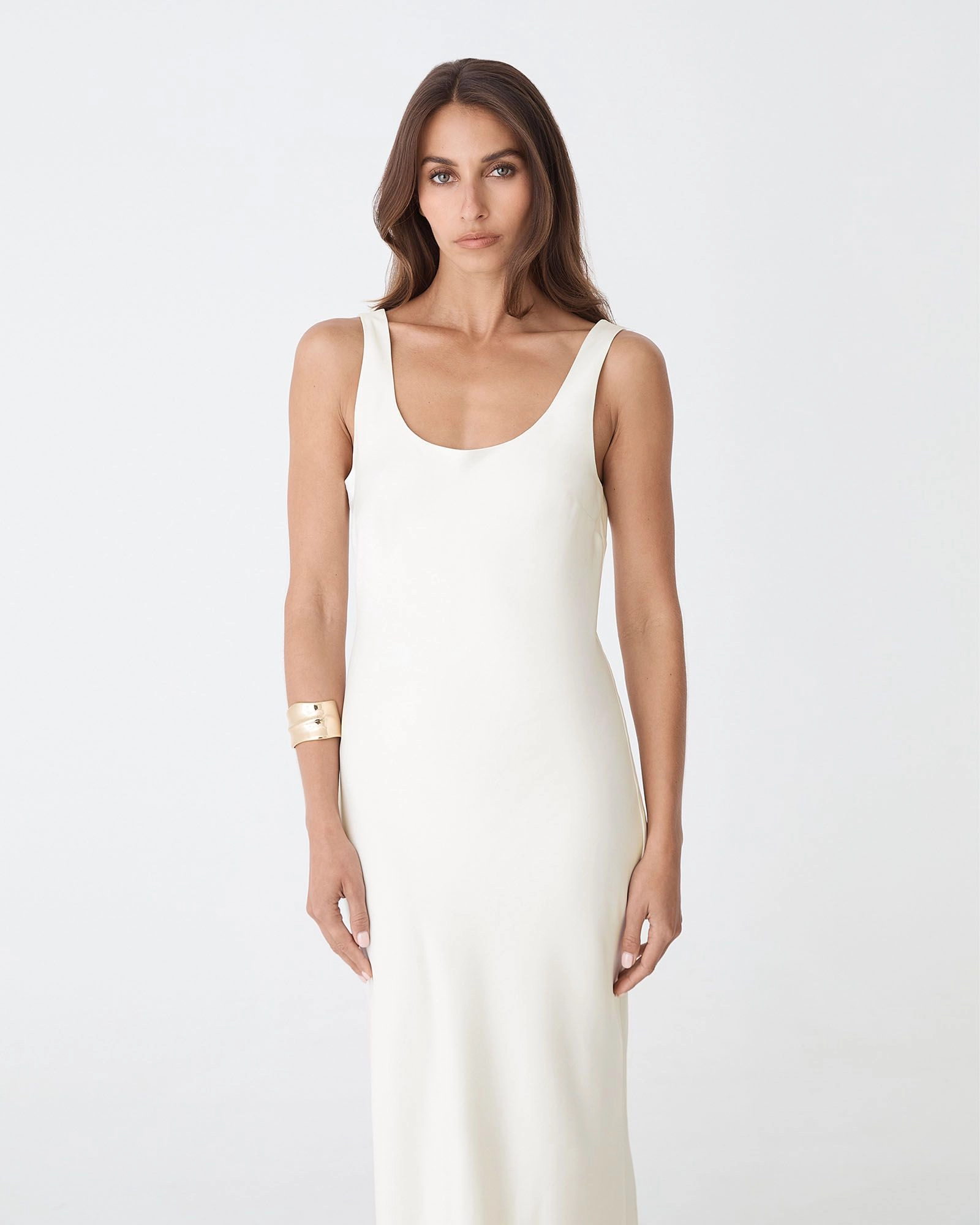 Embrace modern minimalism with the Calliope Bias Cut Slip Dress, designed with a bias-cut silhouette that skims the body, wide fixed straps, a gentle scoop neckline, and silky fabric. Its smooth fabrication offers a fluid drape for a subtly glamorous, effortless look, finishing at a flattering maxi length. Style with statement accessories to complete your look.
