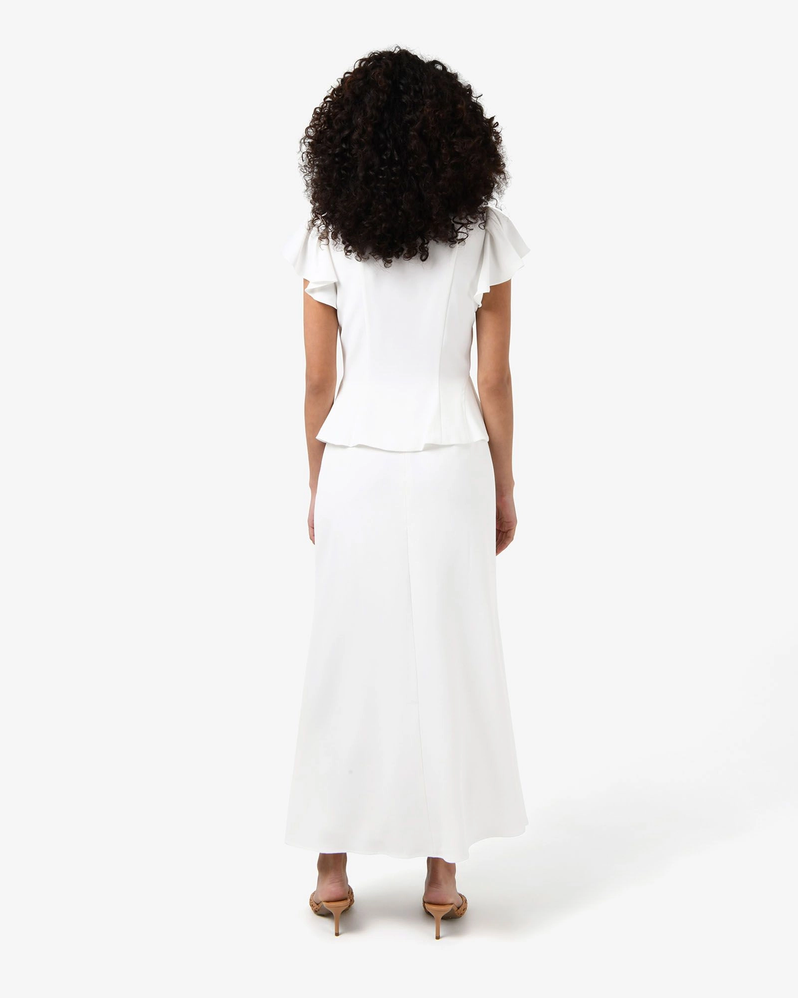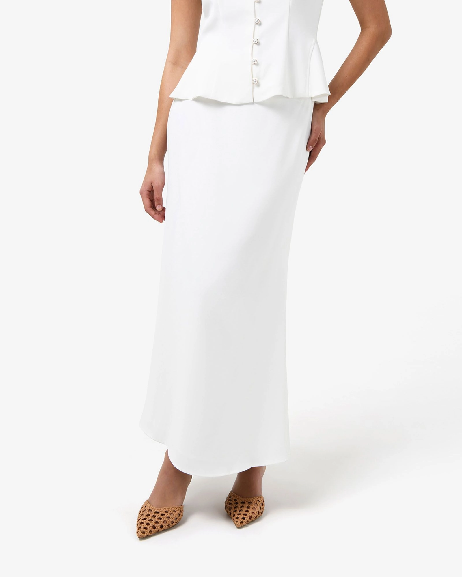 The Carissa Flared Maxi Skirt drapes beautifully for a chic finish. With a high-waisted fit fixed waistband and an invisible back zipper, it falls into a relaxed flared silhouette. A versatile piece, this maxi skirt can be styled up with a blouse or kept simple with a basic top, making it suitable for all occasions.