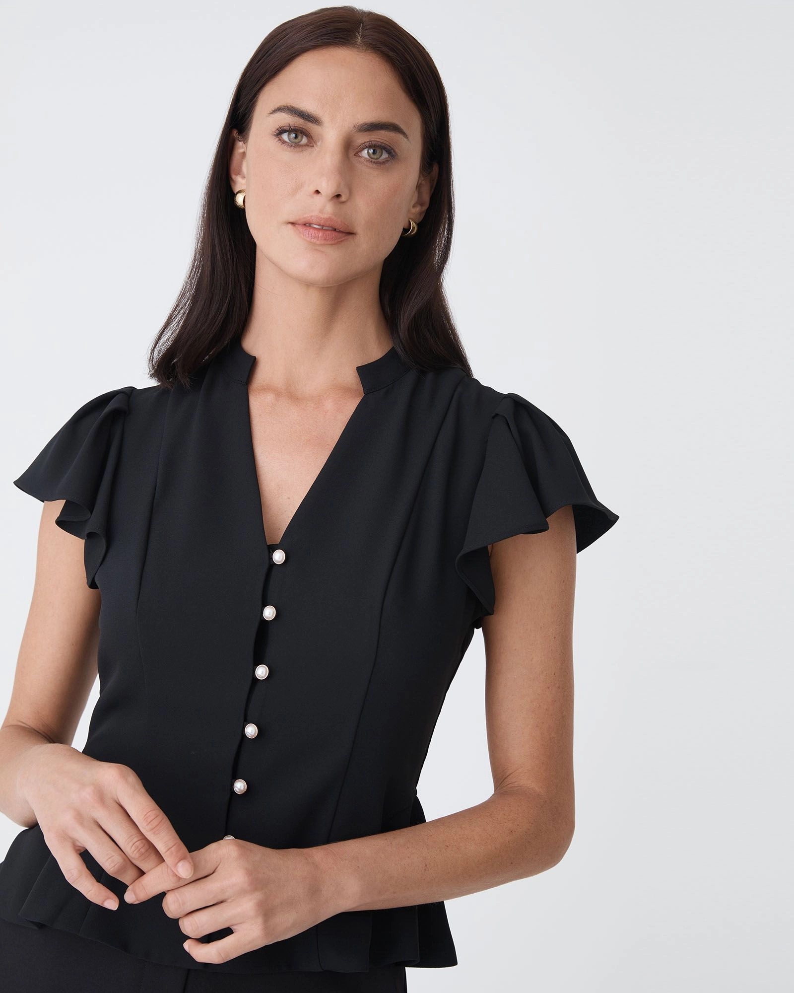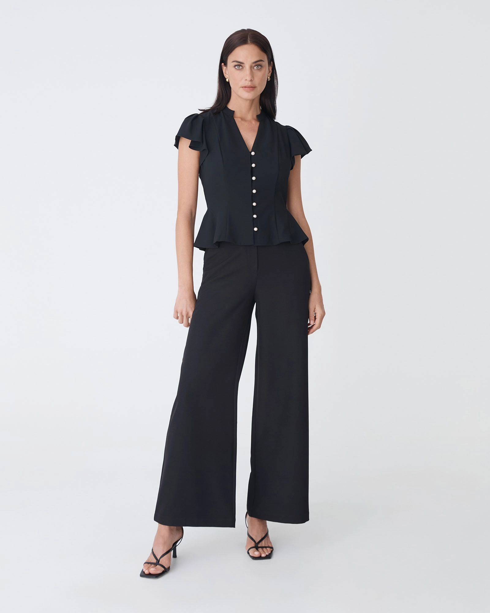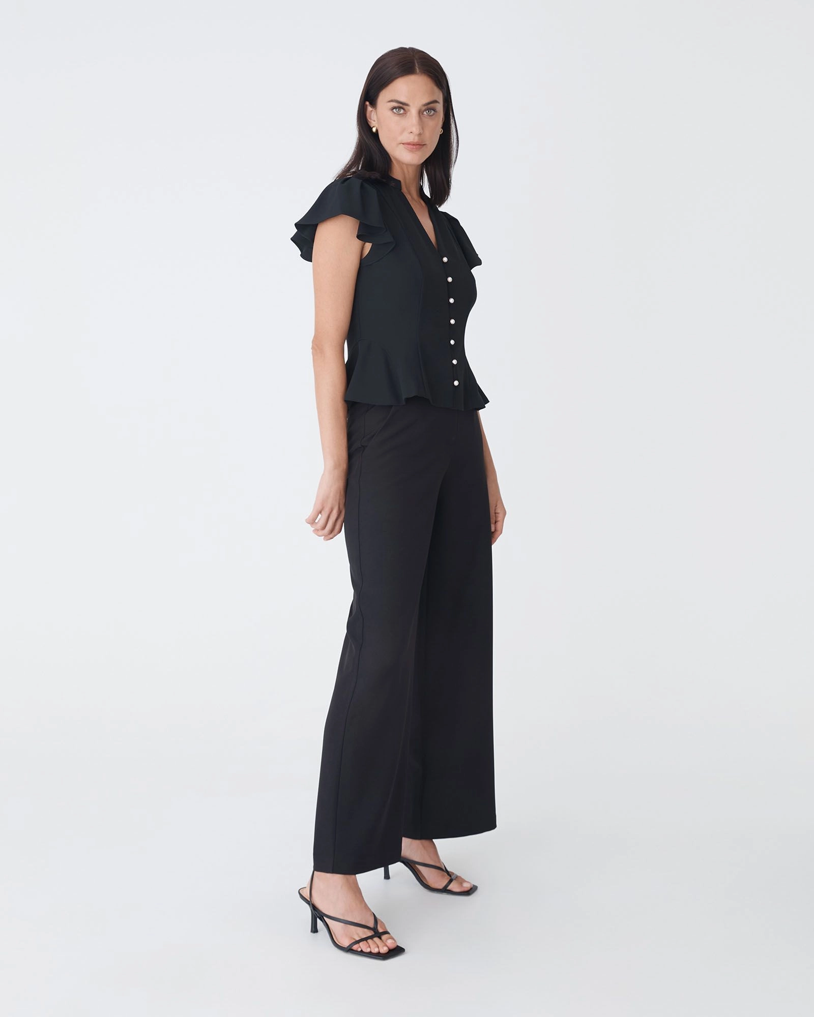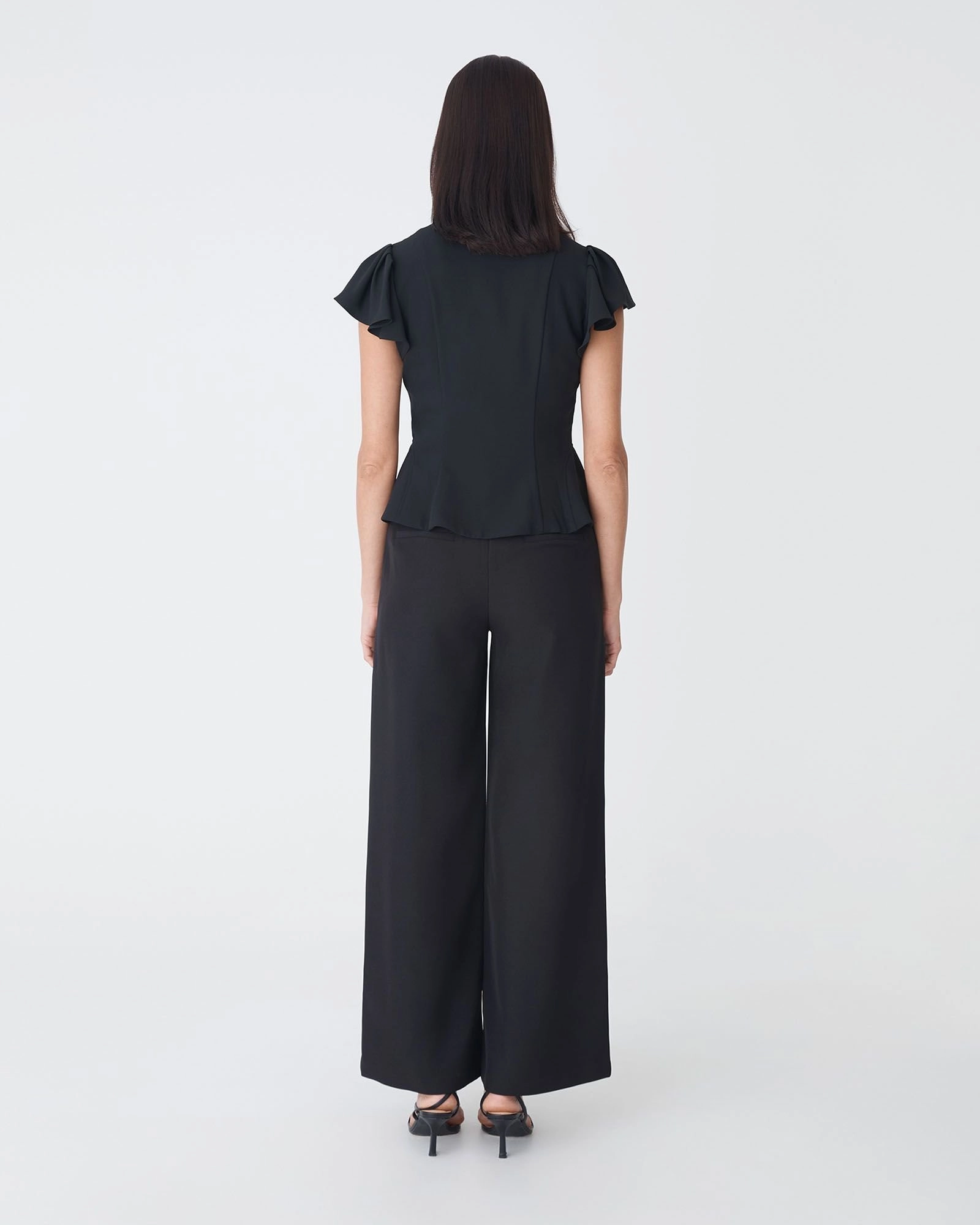 The Carissa Gathered Sleeve Top highlights delicate details with a flattering, feminine shape. Featuring gathered ruffle sleeves and a flattering V-neckline with a stand collar, it’s finished with pearl-like buttons down the front for a touch of elegance. Complete the look with the matching Carissa Godet Skirt and gold statement jewellery for those special occasions.