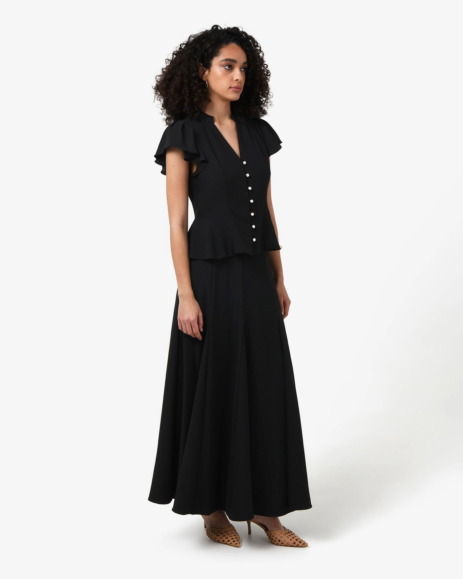 Meet the Carissa Godet Skirt, a timeless skirt defined by its flowing godet panels and flattering silhouette. Designed with a high-waisted fit, it pairs effortlessly with elegant tops or style with the matching Carissa Gathered Sleeve Top for a polished set.
