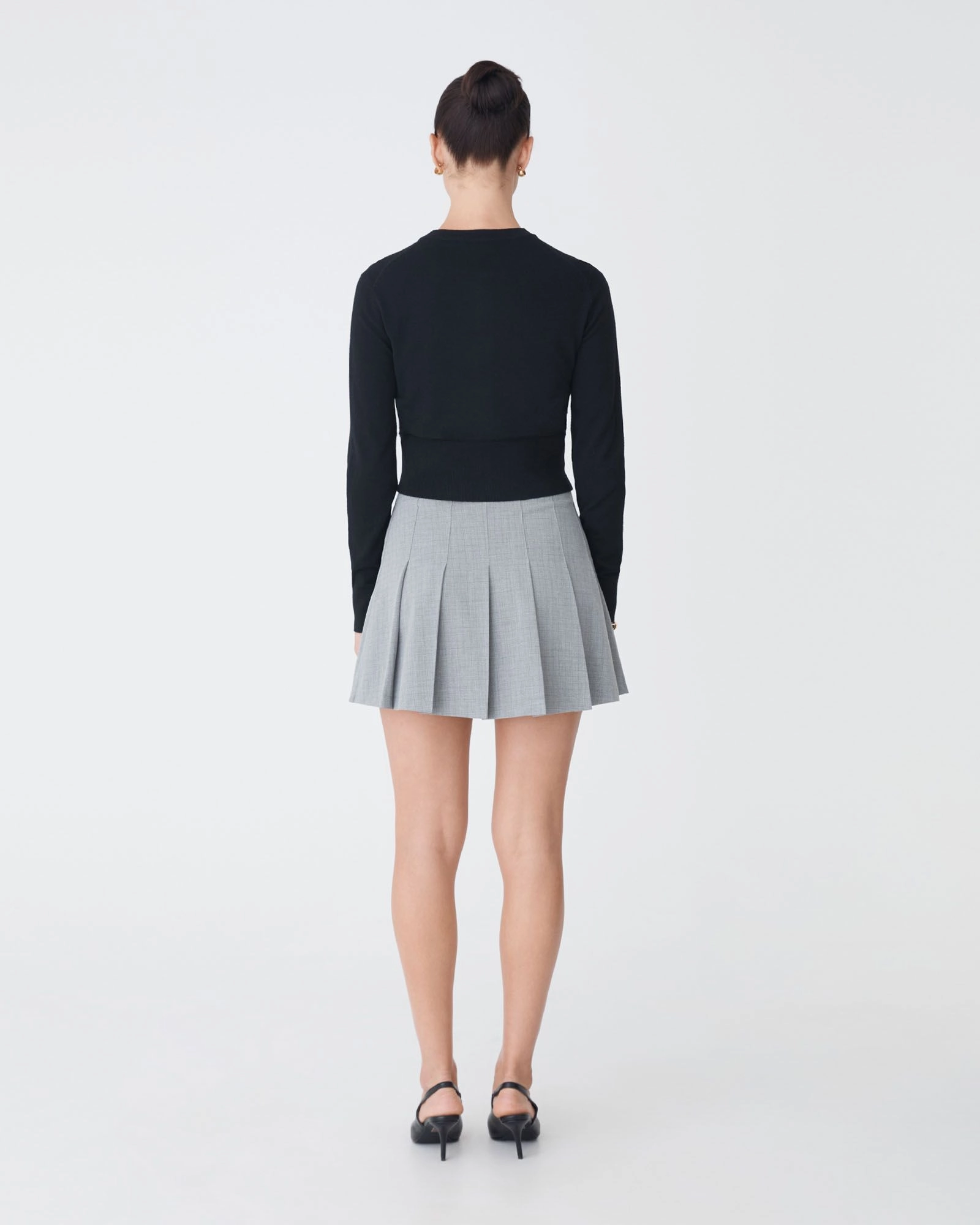 Introducing the Cassie Crew Neck Cardigan an essential knitwear piece. Its cropped, slim-fit silhouette and deep ribbed hem create a minimal piece. Made from soft, fine-gauge knit, it offers lightweight warmth and a clean finish. Pair it with a skirt or trousers for a sleek office look.
