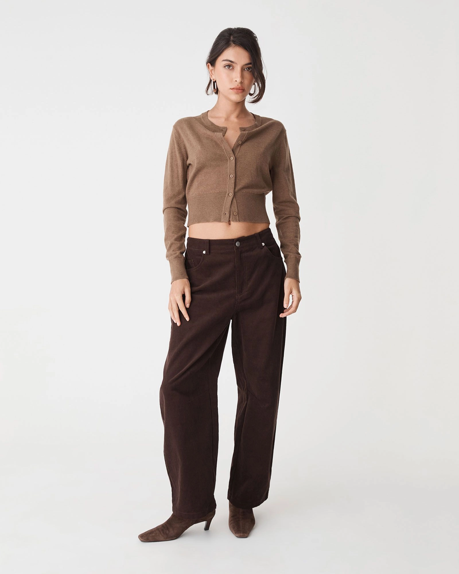 Introducing the Cassie Crew Neck Cardigan an essential knitwear piece. Its cropped, slim-fit silhouette and deep ribbed hem create a minimal piece. Made from soft, fine-gauge knit, it offers lightweight warmth and a clean finish. Pair it with a skirt or trousers for a sleek office look.