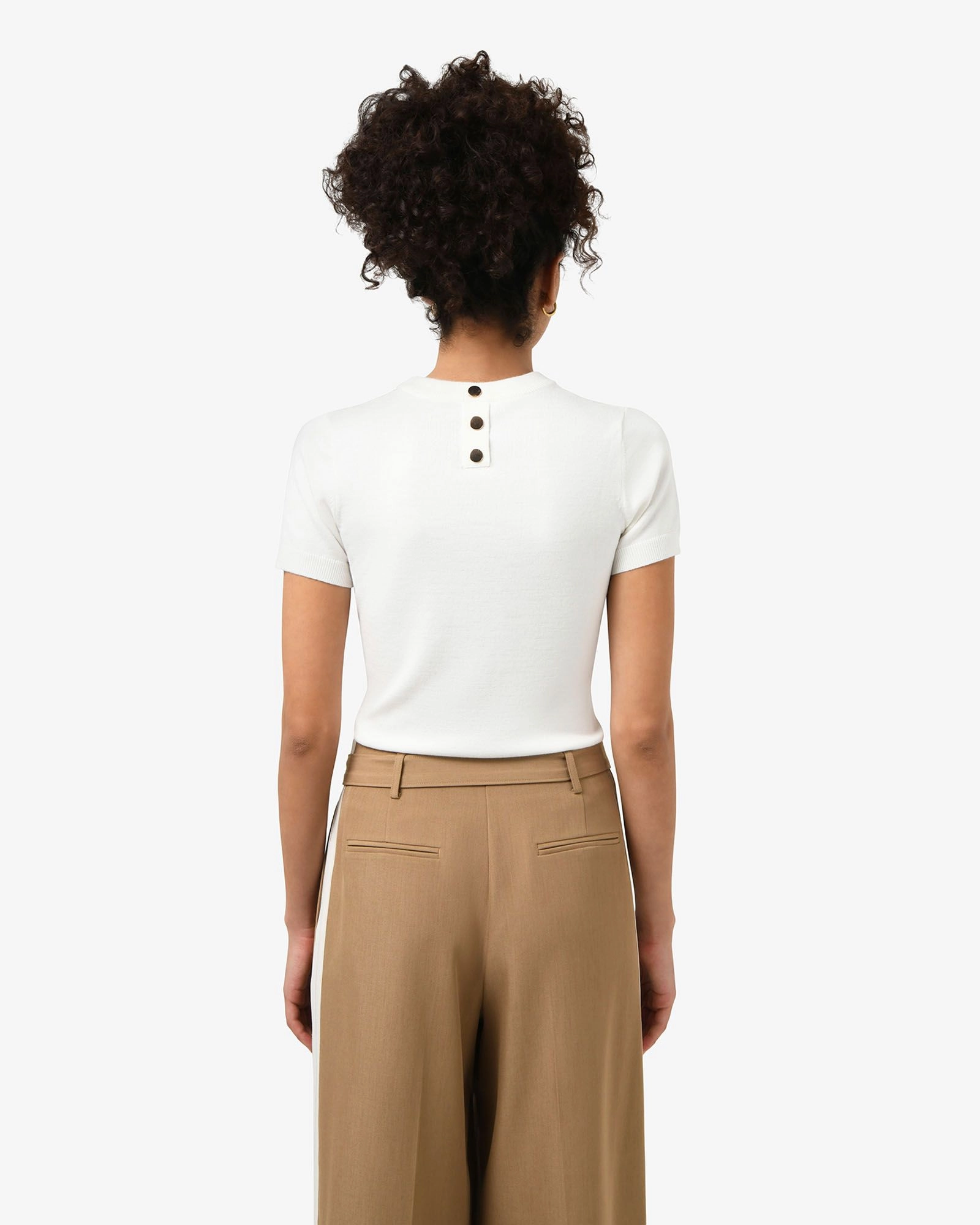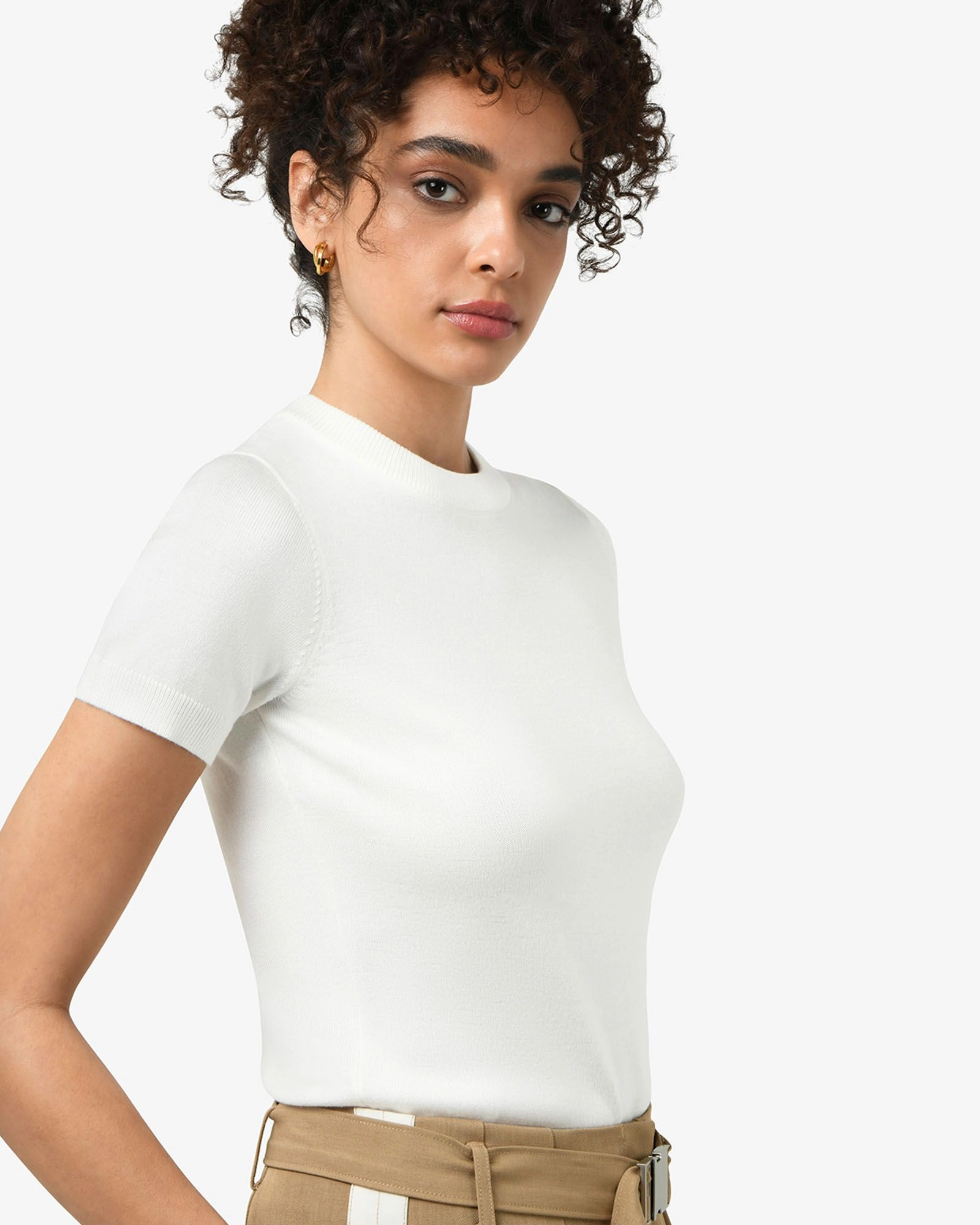 The Catherine Short Sleeve Knit is simple in design making it a versatile foundation for all your favourite separates