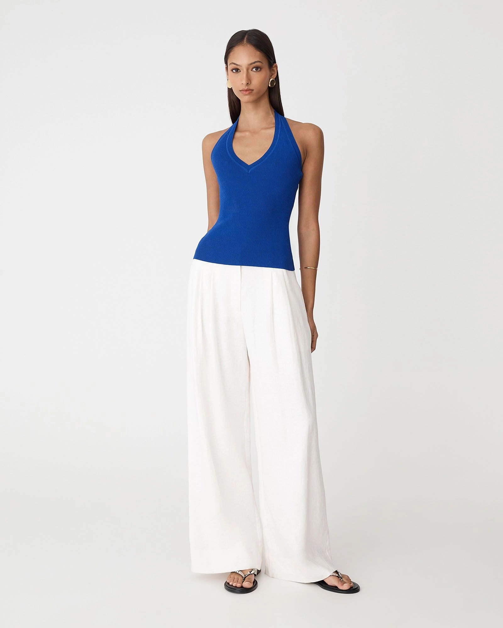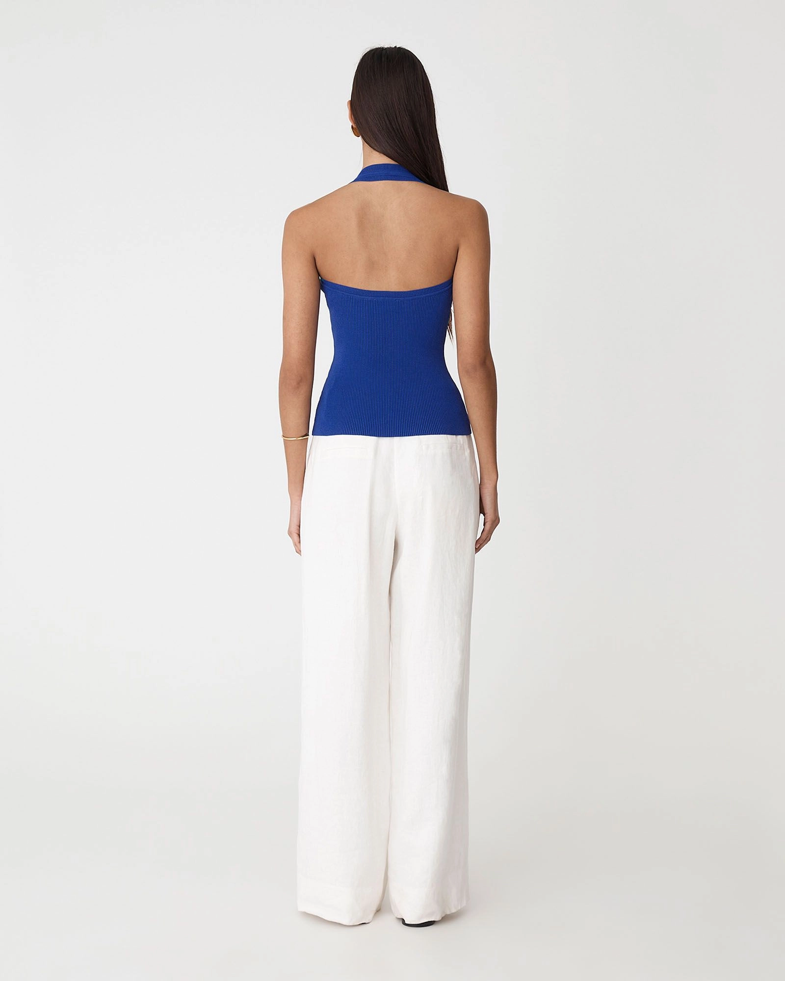 The Chantell Halter Neck Knit Top perfectly blends contemporary style with essential comfort. Featuring a halter neckline, deep V-front, and low back, this fitted knit top creates a flattering, streamlined silhouette with subtle ribbed texture. Designed in a stretch fabrication, it’s a go-to piece for both day and night.