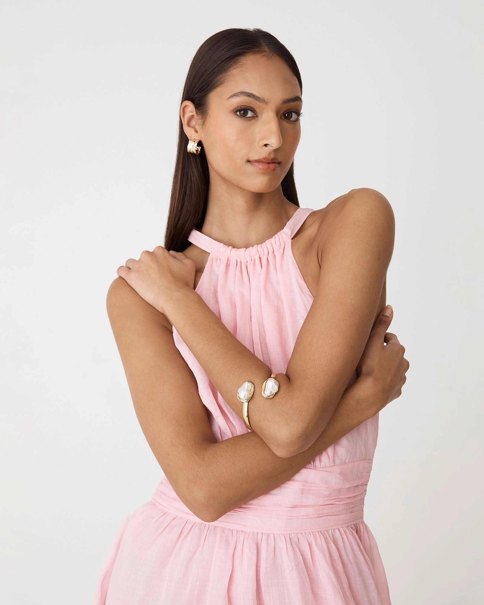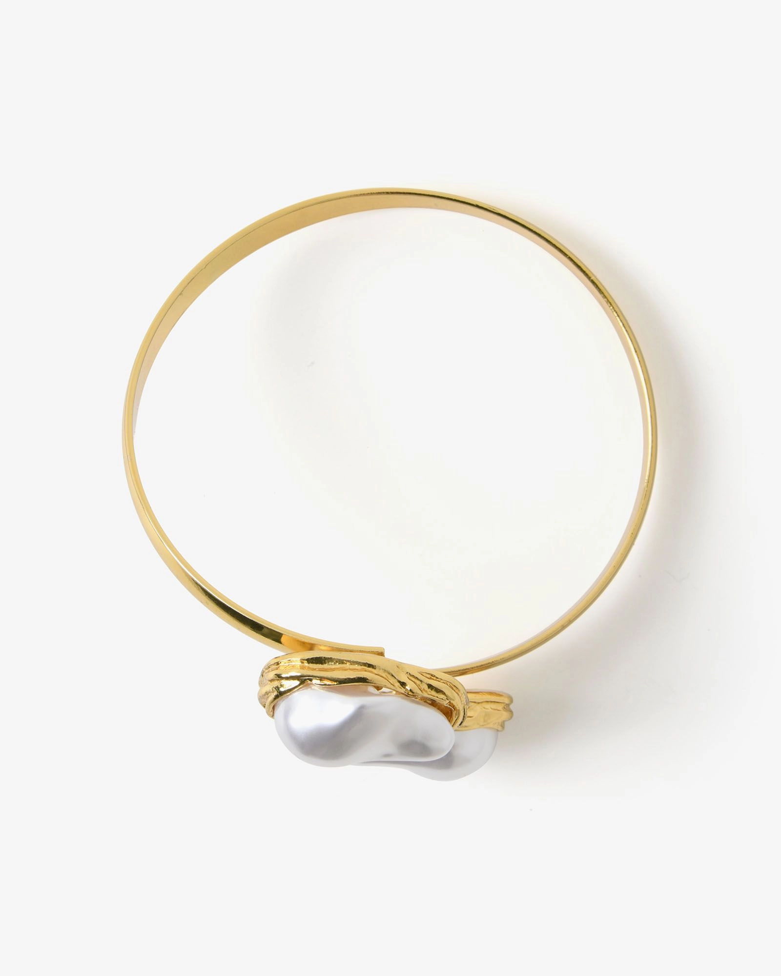 Elevate your look with the Clara Pearl Statement Bracelet. Featuring an open twist band that can be easily wrapped around the upper arm, it also features unique large pearls attached to each end. It can be worn on its own or pair with the matching Clara Pearl Earrings.
