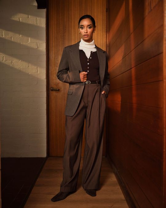 A wardrobe staple you can wear from one season to the next is suit trousers and dress pants featuring a wide-leg silhouette. You can pair this easily with fitted structured shirts or feminine, airy blouses tucked in, to match its relaxed fit. Effortlessly chic, fitted women’s pants with a boxy blazer will help you maintain a polished look from office to weekend and evening soirees.