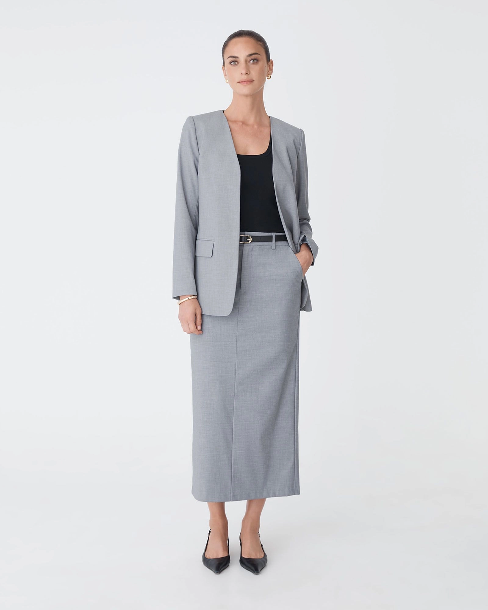 Complete your look with the Dana Leather Belt. Featuring a slim design with a rectangular gold buckle, it is easy to style with tailored pants or dresses.