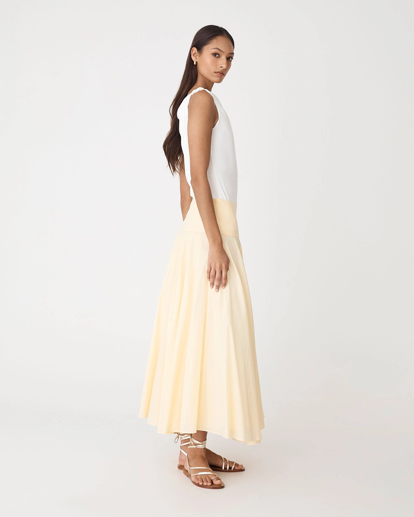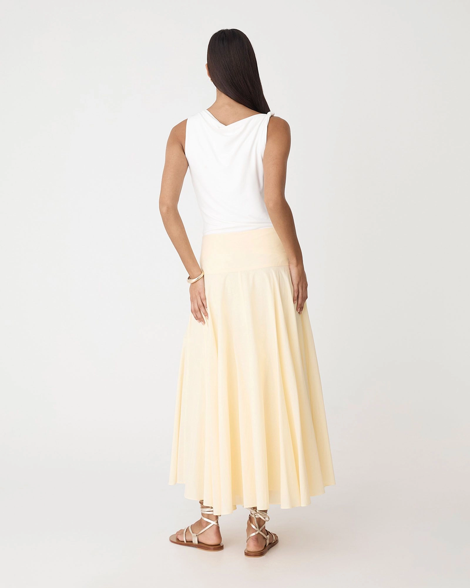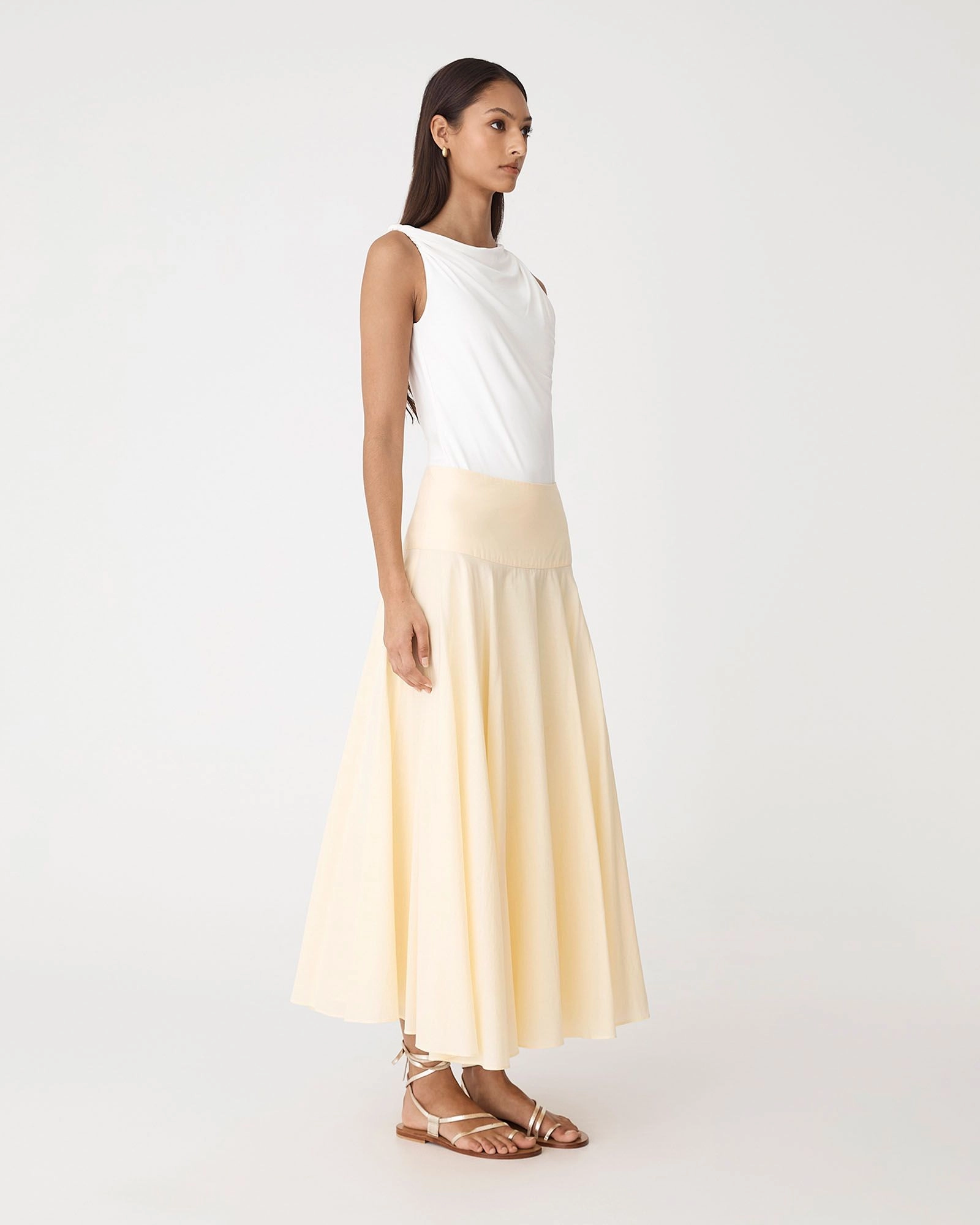 The Deb Cotton Midi Full Skirt, is made from 100% Cotton and features a low to mid drop waist design. Designed with a midi length, invisible side zipper, and full lining, it offers a classic, versatile silhouette perfect for office to after hours styling.