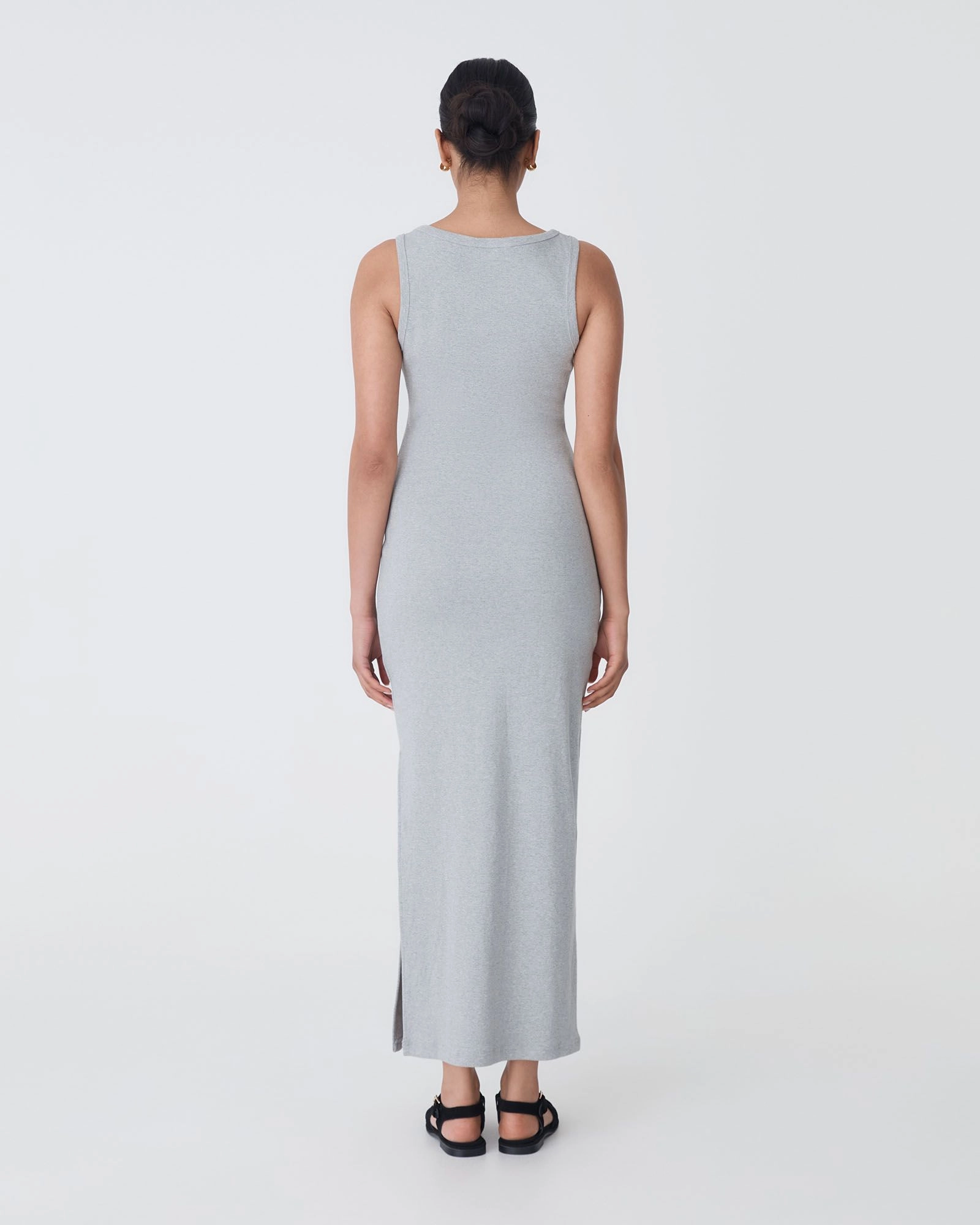 The Devin Cotton Knit Dress features a body skimming silhouette, a classic scoop neckline, and tank straps for comfortable wear. Made from a ribbed, cotton knit fabrication that gently hugs the figure, it has a high side slit that adds movement, making it perfect for relaxed days or casual evenings. Accessorise with statement jewellery to complete your look.