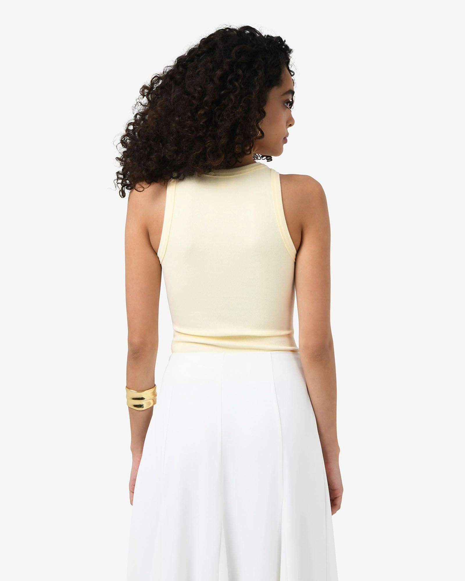 The Devon Cotton Blend Singlet is a versatile wardrobe essential that is made from a stretch, ribbed, cotton blend fabrication. Featuring a round neckline with a body skimming fit, it easily pairs with your favourite denim for a neat out-of-office look, or style with tailored pants and skirts for an elevated outfit.