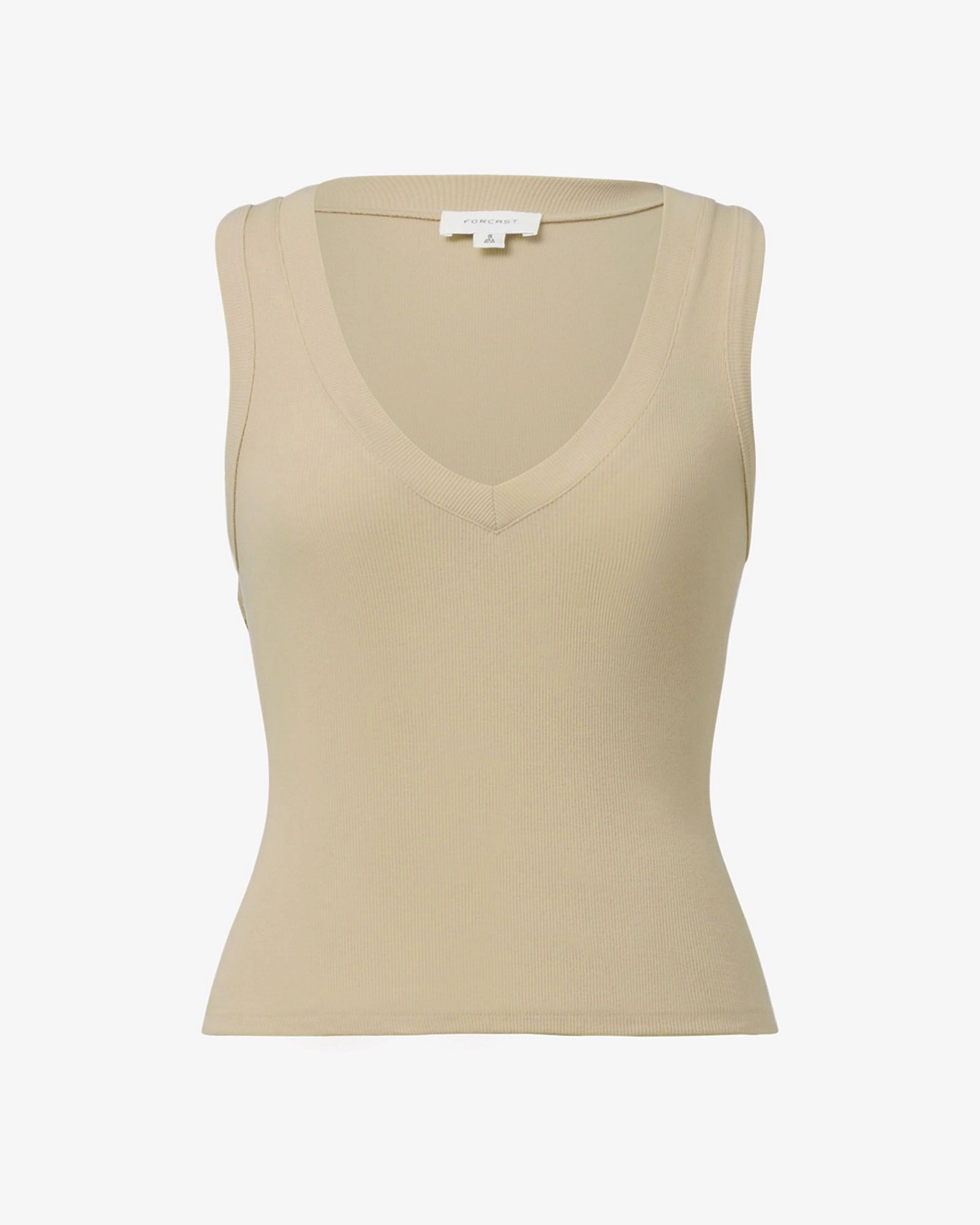 The Devon V-Neck Singlet is a soft ribbed knit piece with a flattering V-neckline, racer cut, and a body-skimming fit. Designed to gently hug your figure, it creates a smooth, flattering silhouette - perfect for tucking into high-waisted or relaxed-fit bottoms.