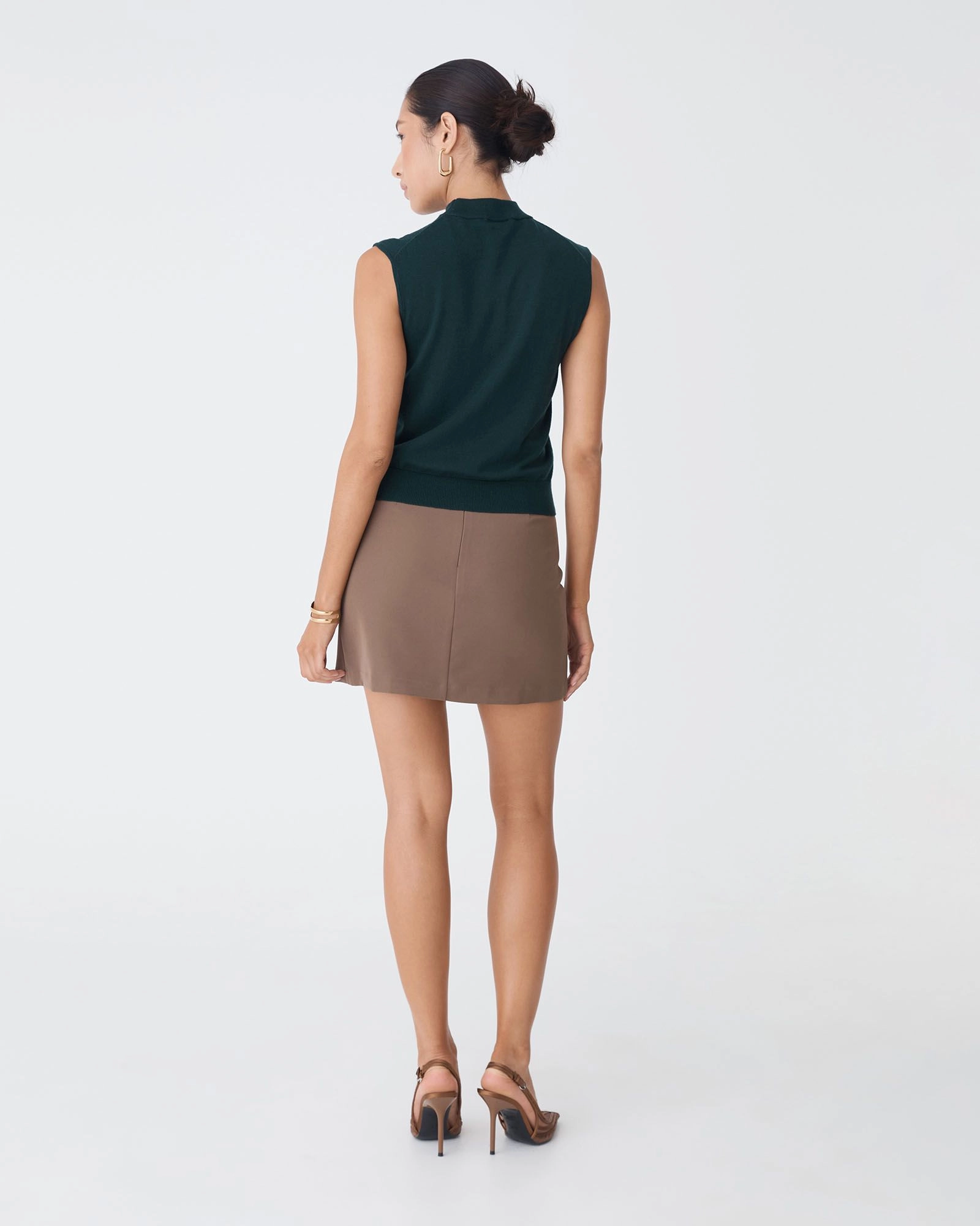The Dina Mock Neck Sleeveless Knit is an essential piece designed for clean, modern styling. Featuring a sleek high neck and sleeveless cut, it offers a comfortable fit to easily transition from work and after hours. The stretch fabrication maintains its shape with ease, while the ribbed hem can be worn tucked in or out. Style with skirts or tailored pants to complete the look.