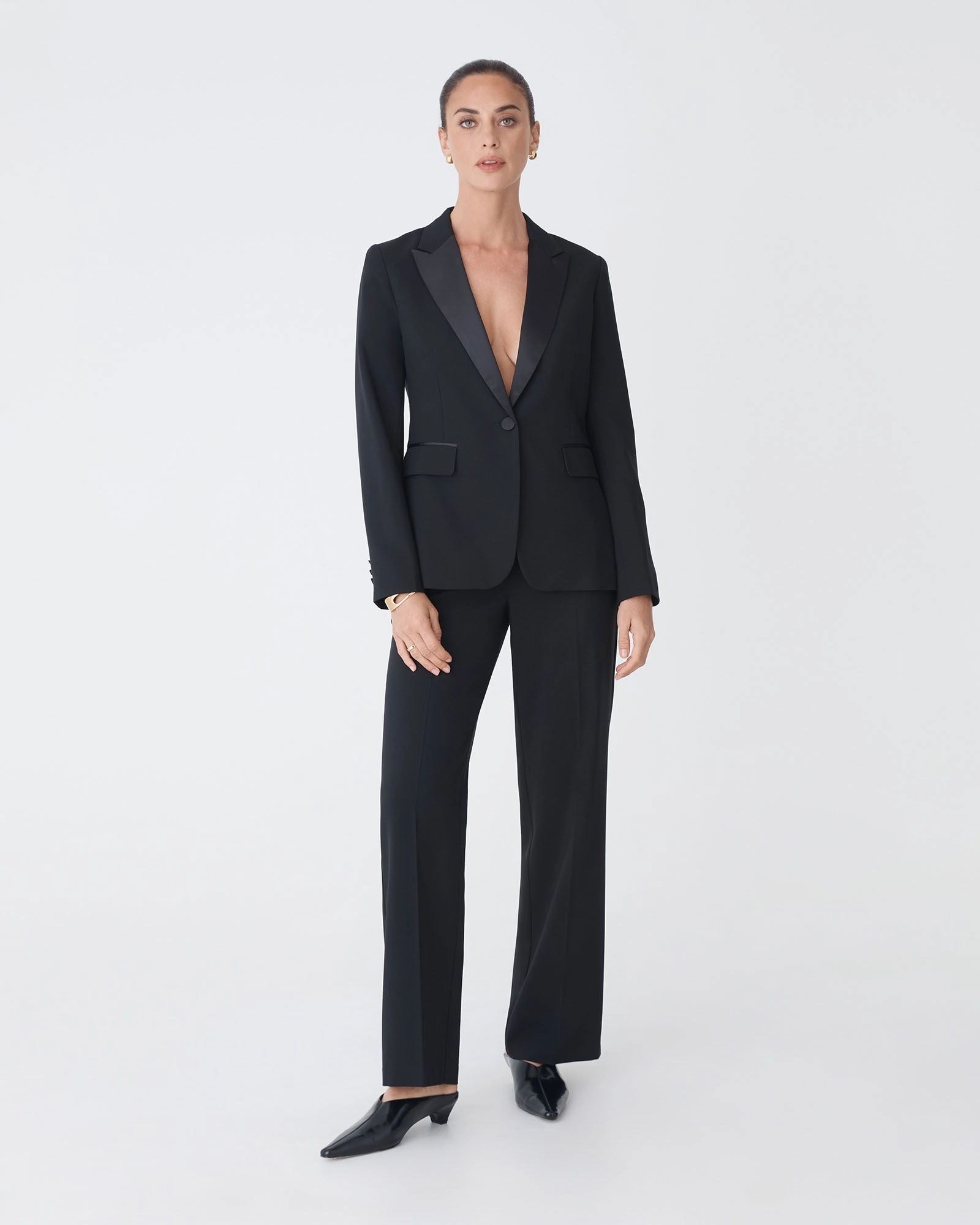 The Eve Classic Blazer is designed to elevate both work and evening looks. Featuring a structured fit and contrast satin peak lapels, it brings a modern tuxedo-inspired edge to a timeless silhouette. Easy to style as part of a matching set or worn on its own.