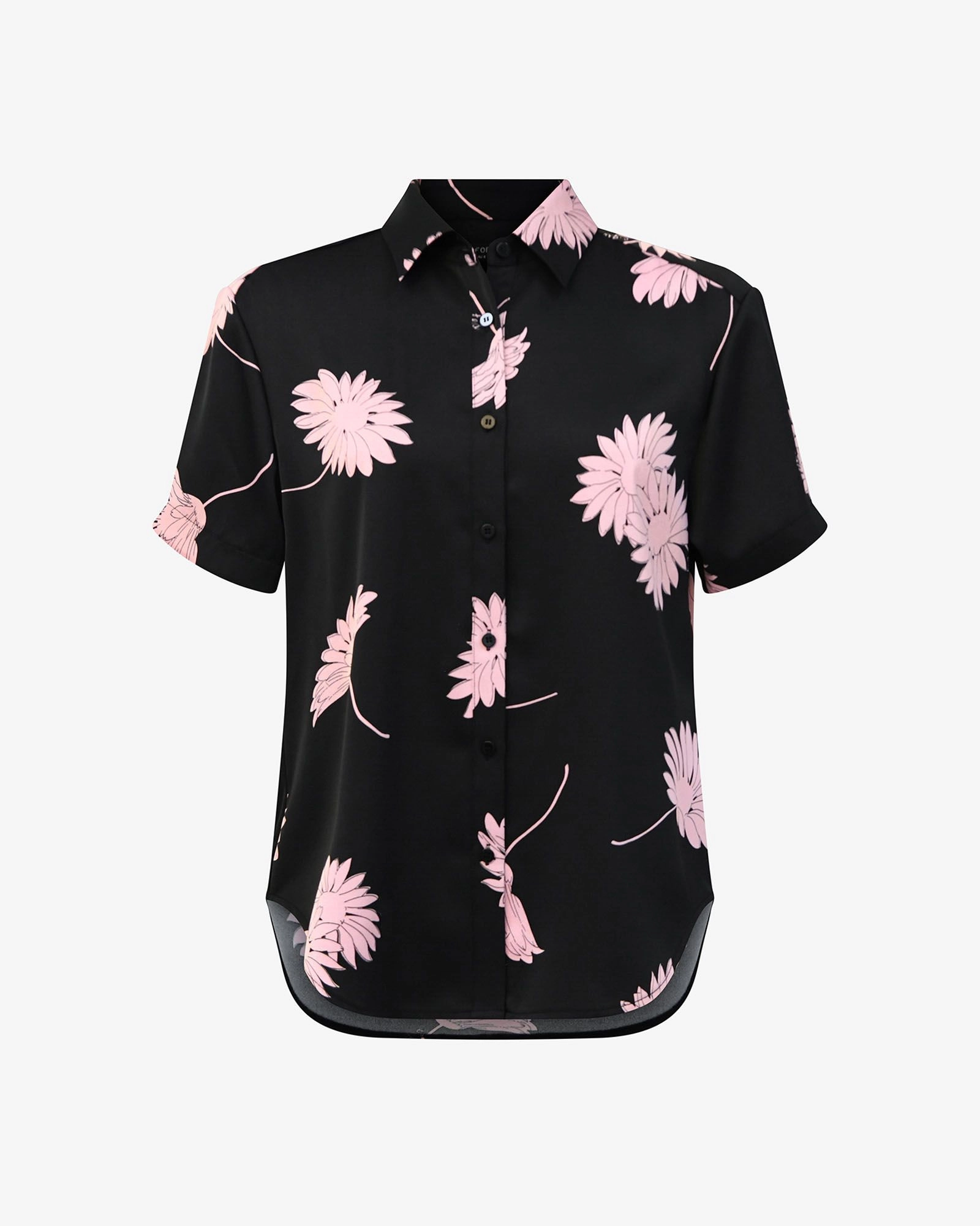 The Felicia Satin Shirt blends timeless charm with everyday ease. Crafted in a blush-pink floral print on smooth, luxurious satin, it drapes beautifully in a relaxed fit with a curved hemline. Perfect for elevating your casual wear.