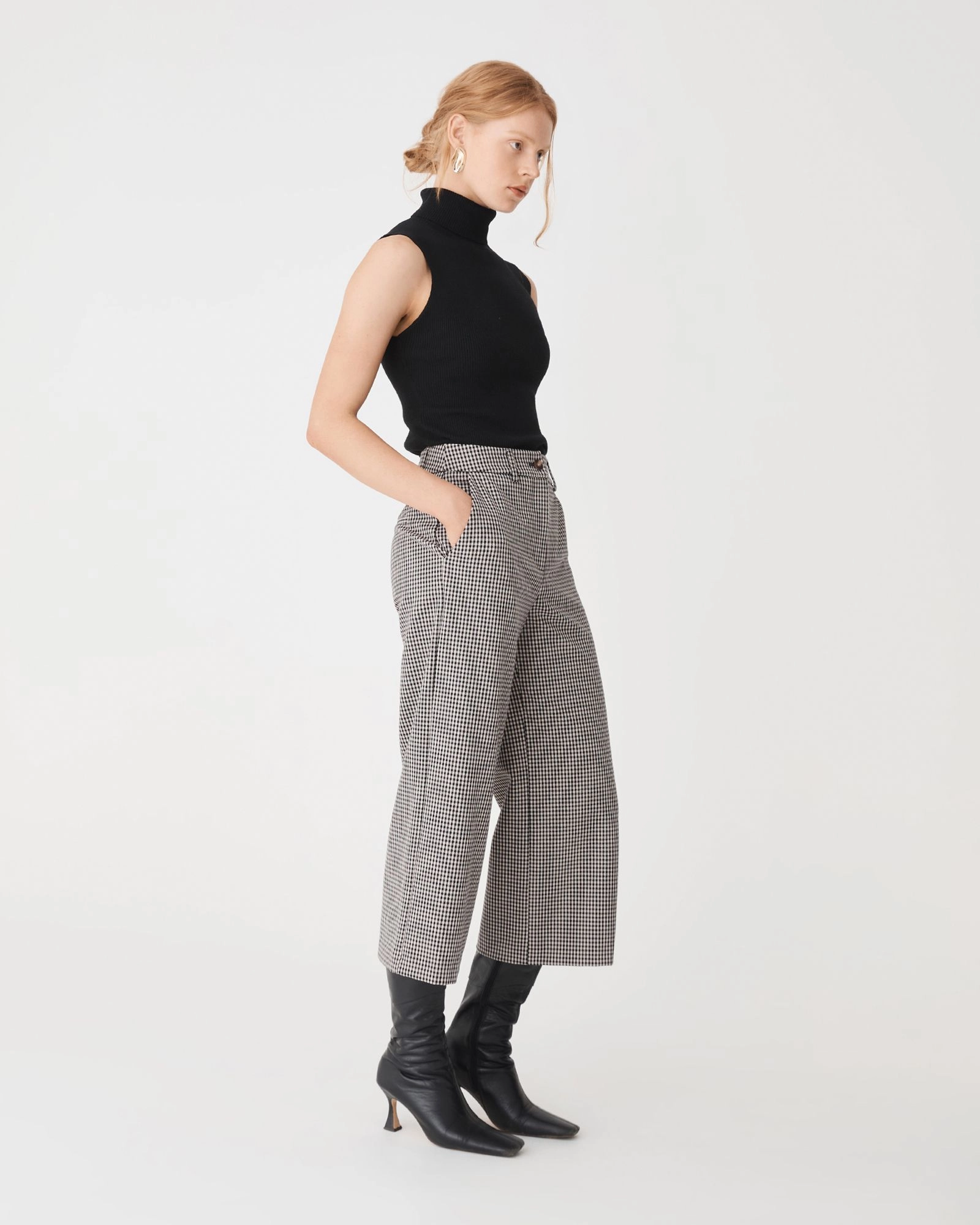 The Flynn Wide Leg Culottes bring a sharp, tailored style to everyday dressing. Featuring a high to mid-rise waist and wide-leg silhouette, finishes at a cropped length. It is structured with a fixed waistband, front fly fastening, and side pocket detailing. Pair with the matching Flynn pieces for a directional, head-to-toe look