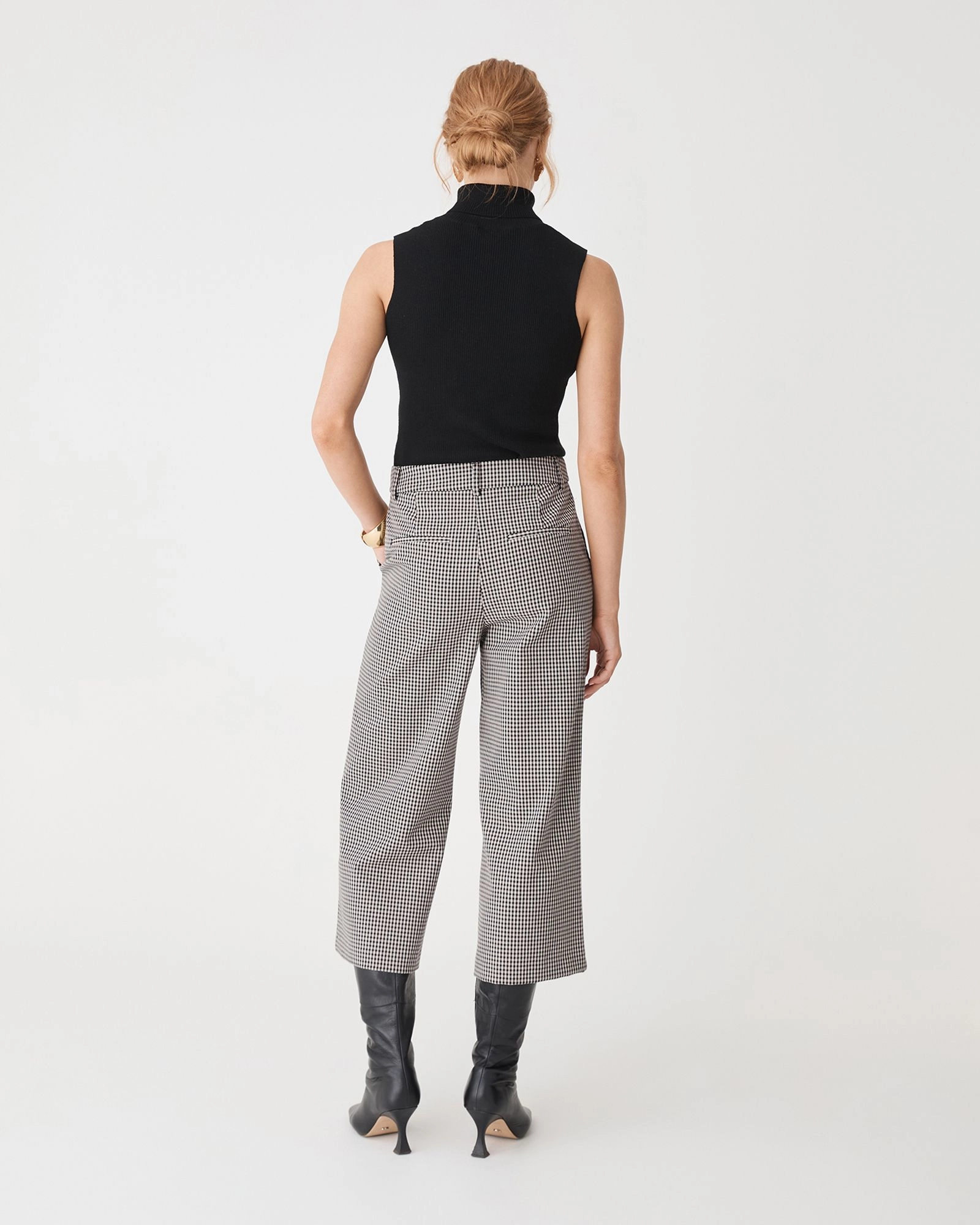 - Structured, fixed waistband with belt loops