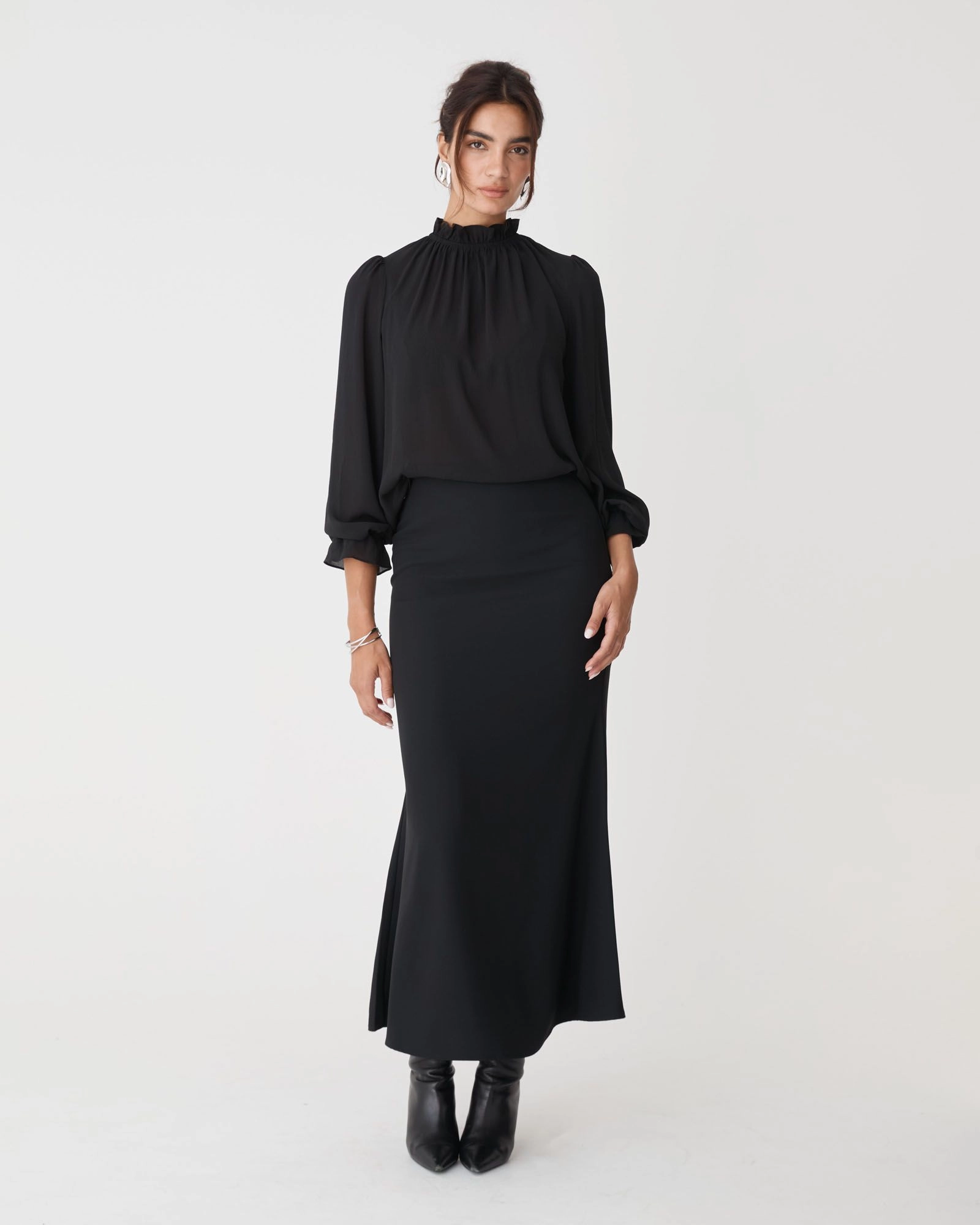 Introducing the Hailey Frill Neck Blouse, a romantic piece designed to elevate everyday styling. Featuring a high frill neckline with soft gathering and elastic stretch, it is complemented by long balloon sleeves with frill elastic cuffs. Suitable for workwear and events, dress it up or down with skirts or pants to suit the occasion.