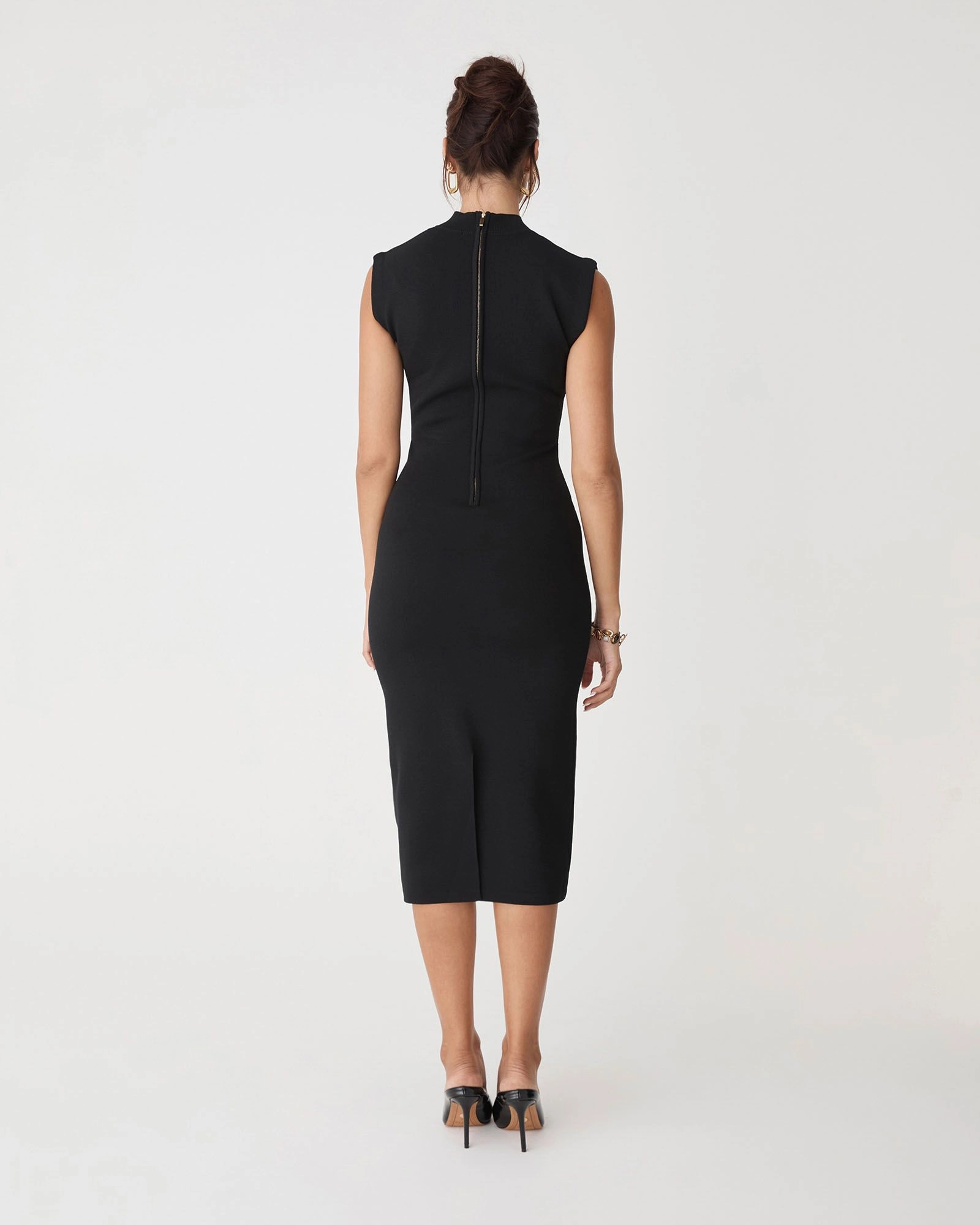 - Sleeveless, fitted silhouette