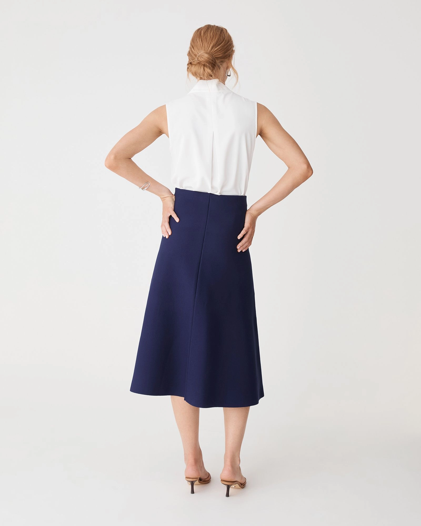 The Heloise Milano Knit Skirt features a clean A-line silhouette crafted from premium Milano knit for a smooth, structured finish. Designed with a high-waisted fit and in a midi length, style with a blouse, or with a lightweight knit and boots for a chic everyday outfit.