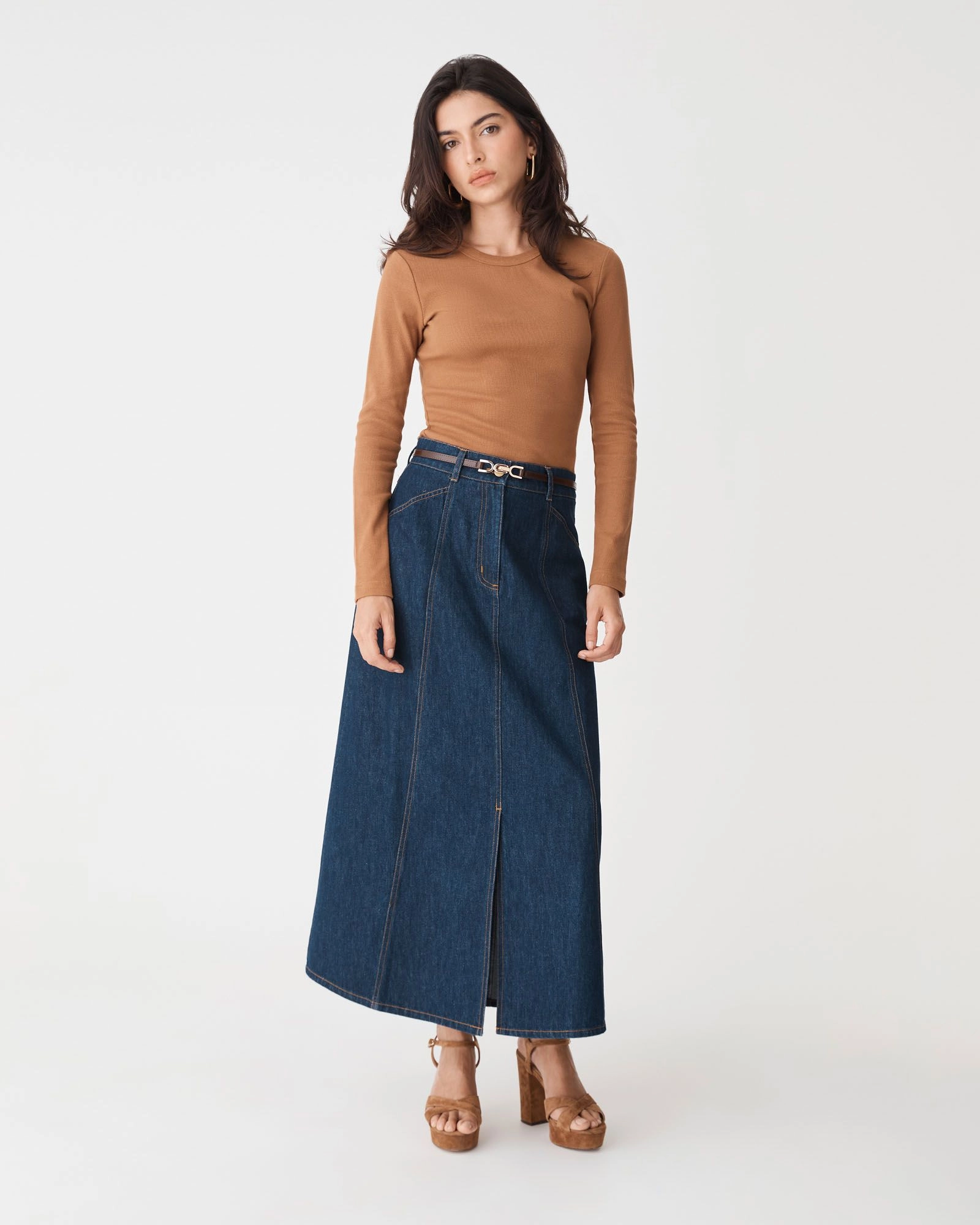 The Henessy Leather Belt features an ultra-slim profile with a polished double-D clasp, adding a refined finish to any outfit. Designed with an adjustable sliding mechanism, it offers a custom fit without traditional notches, making it easy to wear with high-waisted trousers or skirts to define the waist, or style over dresses for a clean, modern accent.