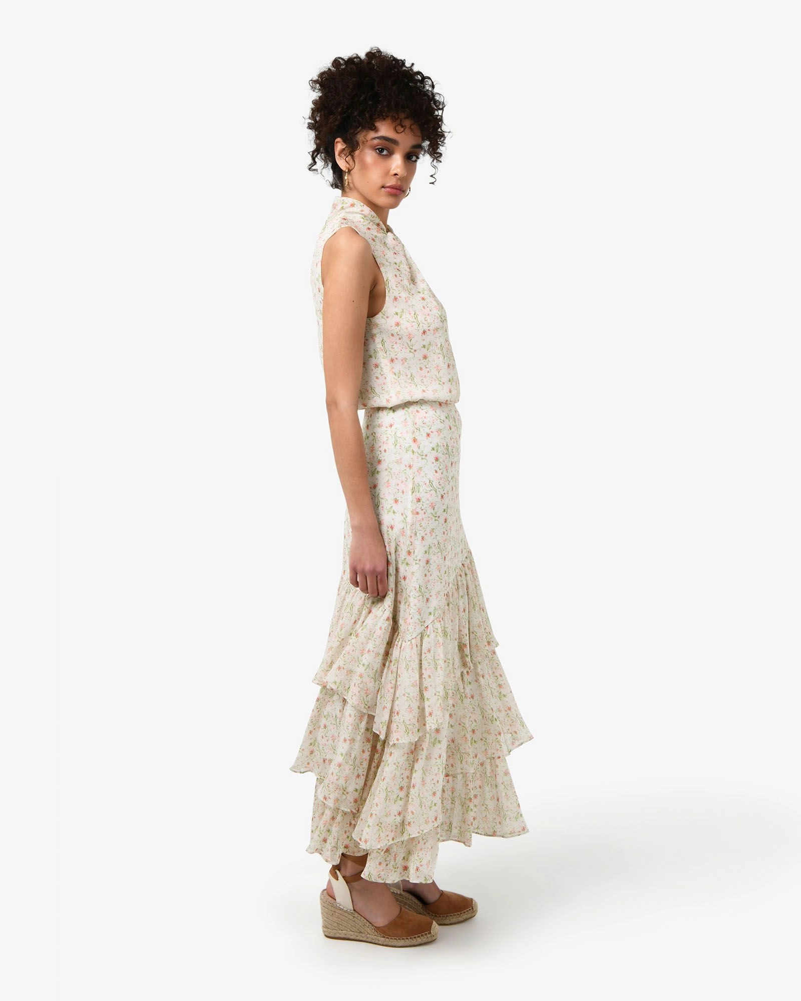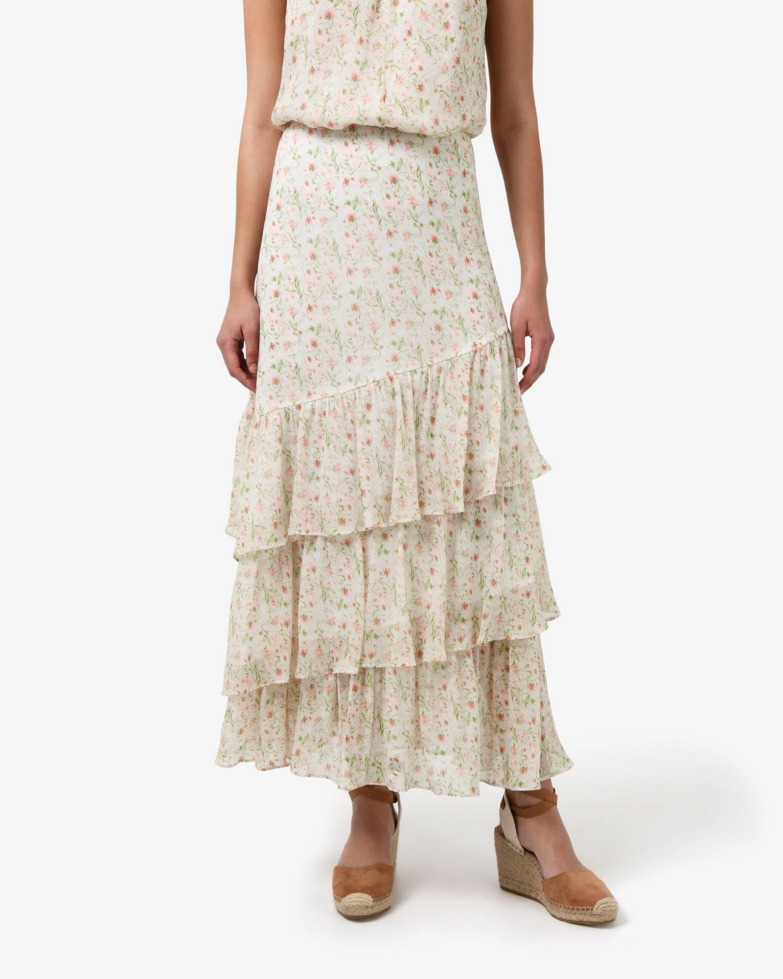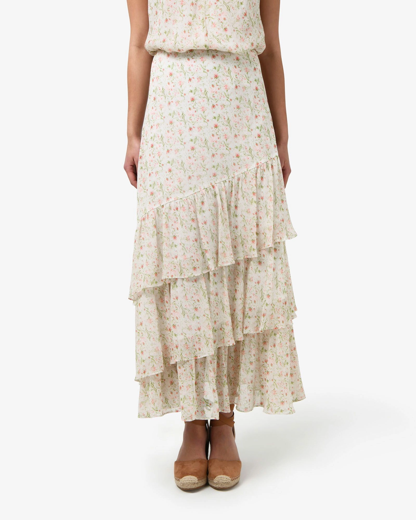 Indy Ruffle Floral Skirt captures effortless femininity with its asymmetrical tiered ruffle detail in a delicate floral print. Flowing in a flattering maxi length and fastens neatly with a concealed back zipper, the skirt can be paired with the Indy Twist Floral Top for a perfectly coordinated look, or style it with a simple top and accessories.