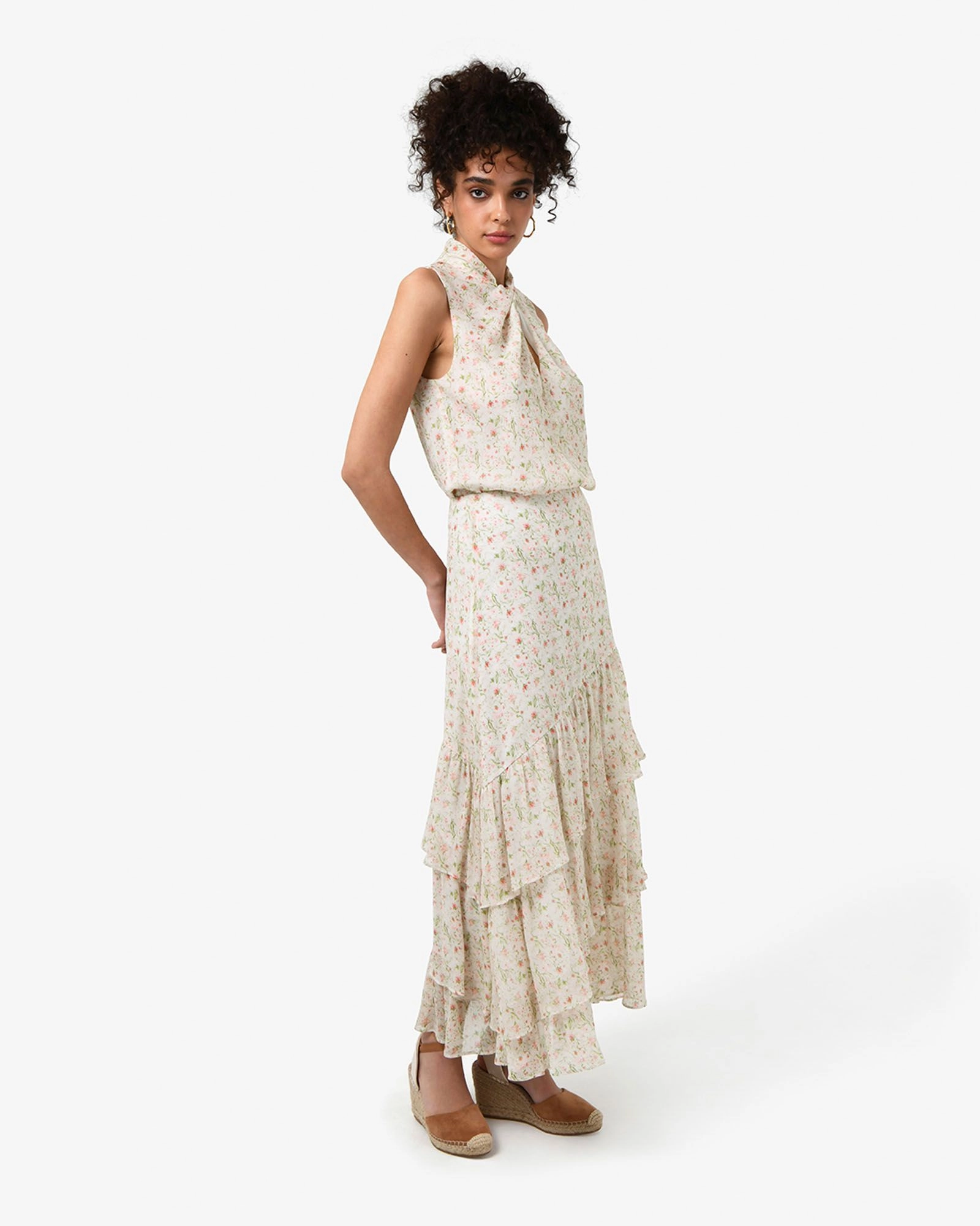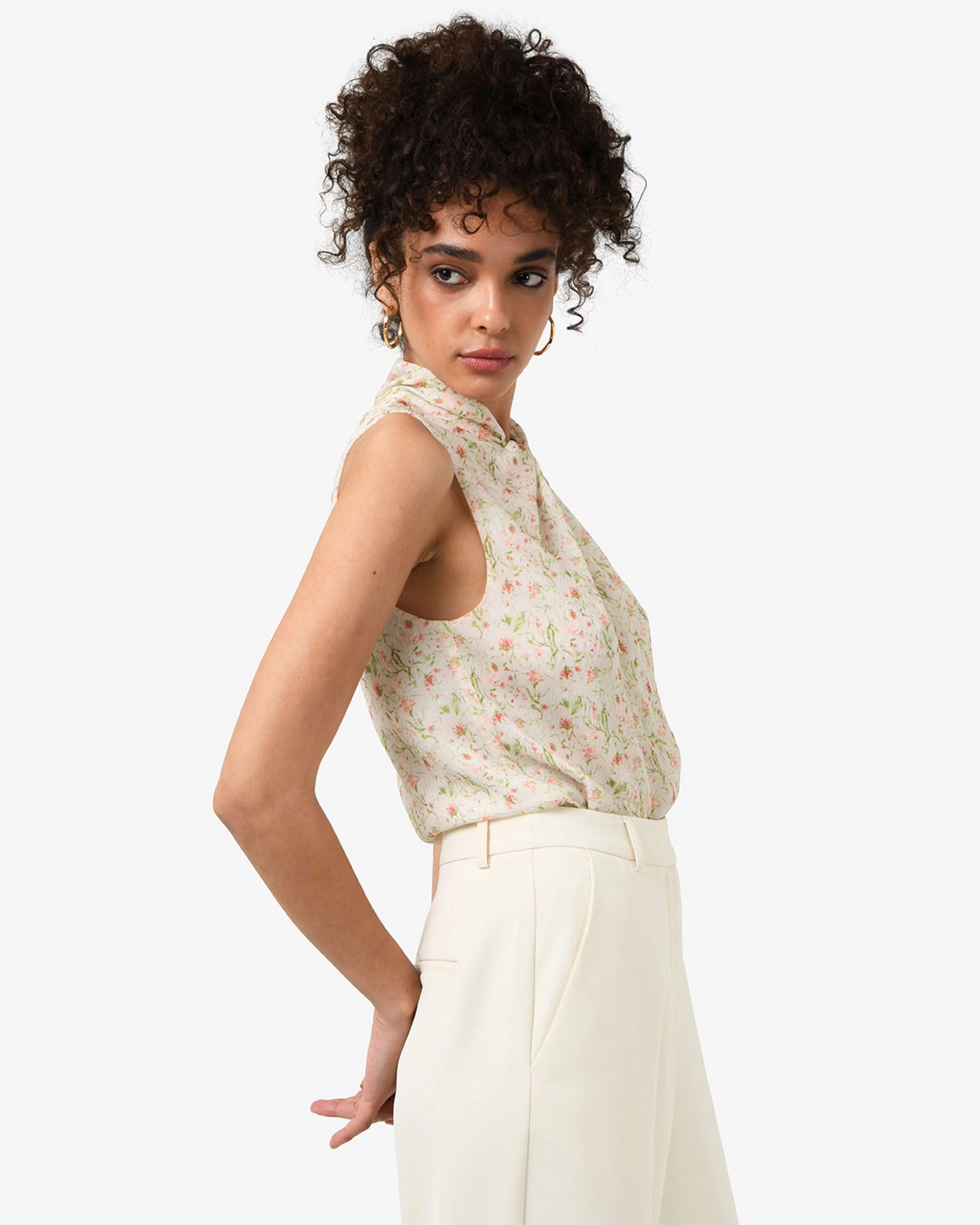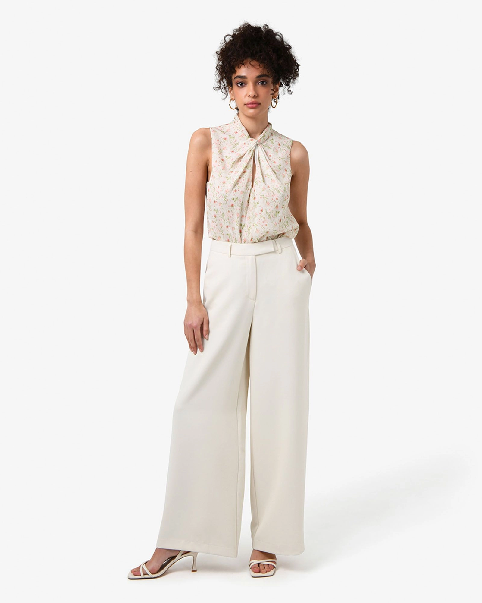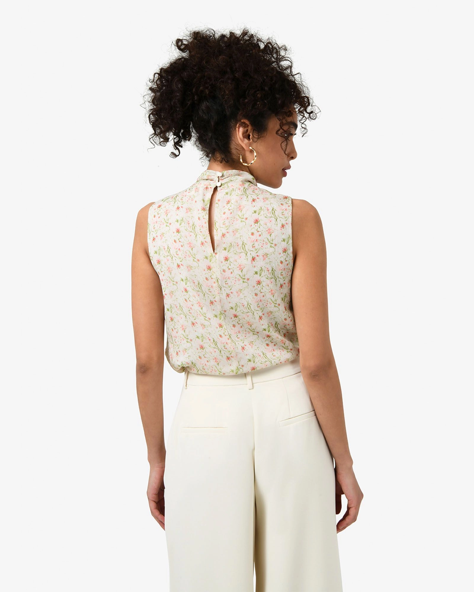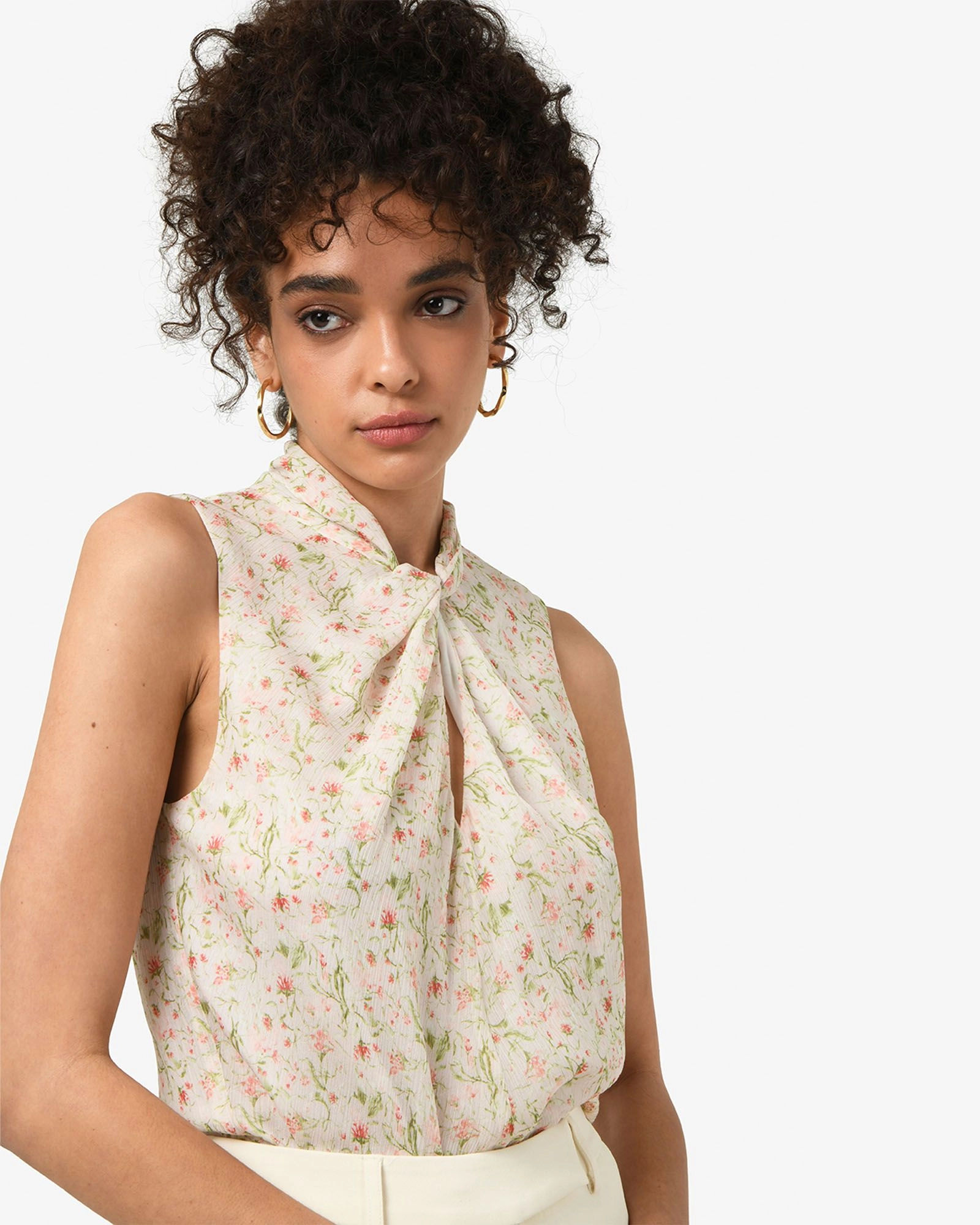 The Indy Twist Floral Top is designed with a delicate, floral print with soft pink and light green accents on a neutral base. Featuring a keyhole front twist detail and finished with a back double loop button fastening, it is perfect for pairing with denim and skirts, or styled with the Indy Ruffle Floral Skirt for a coordinated set.