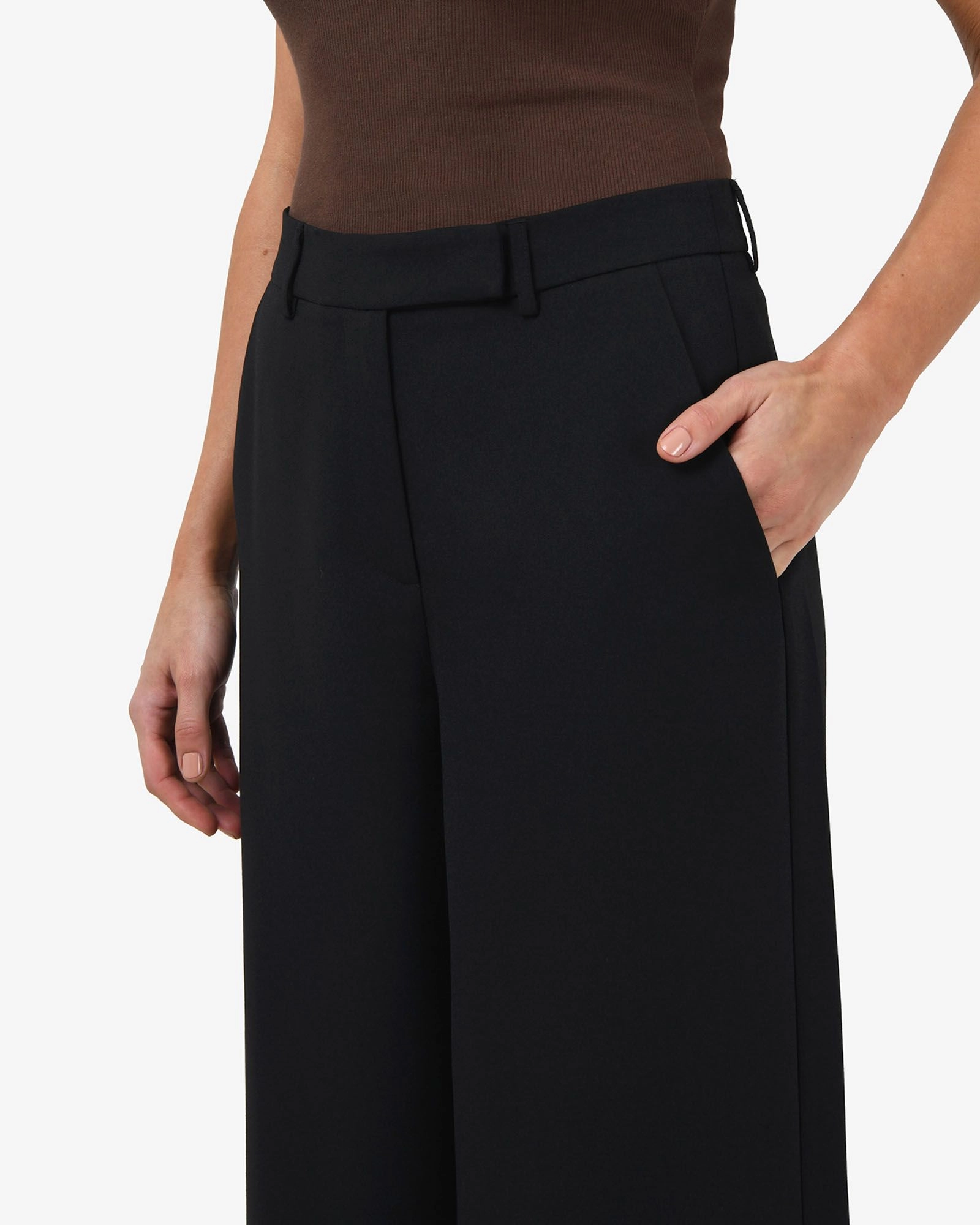 - Fixed waistband with belt loops