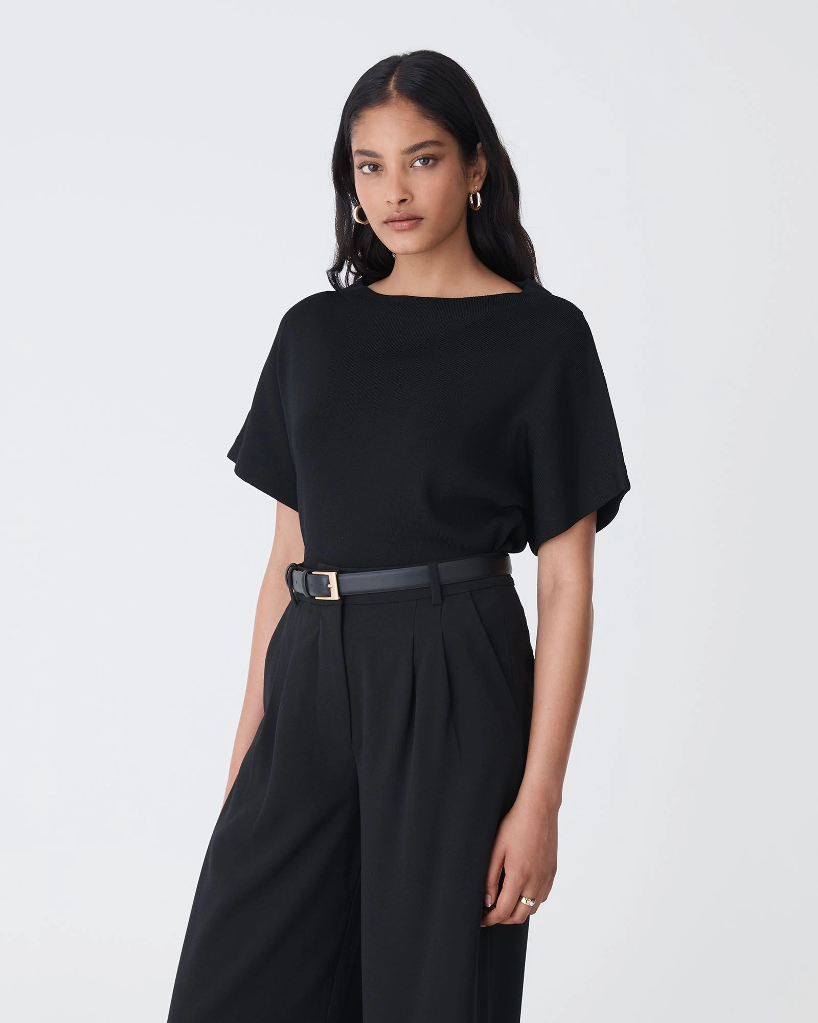 The Jemma Relaxed Knit Top offers comfort and style. With a relaxed fit, boat neckline, and dropped shoulder sleeves, it’s perfect for casual, comfortable days. Pair with your favourite denim and sneakers for a carefree look, or dress it up with tailored trousers and heels for something more refined.