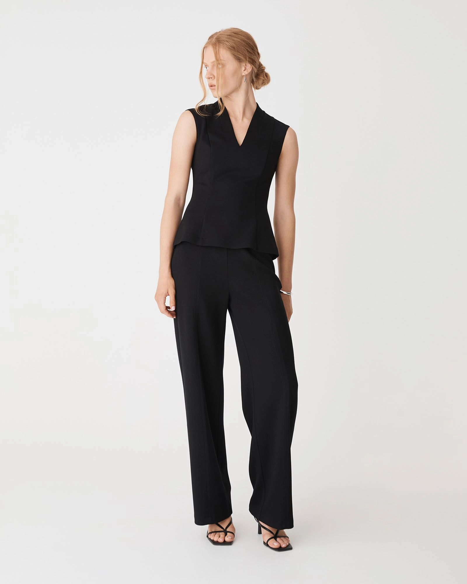 The Juno V-Neck Ponte Top features a sculpted silhouette with a structured ponte finish that holds its shape. Designed with a notched V-neckline and contoured paneling, it pairs easily with tailored trousers or a skirt for a sleek, put-together look. A versatile piece that transitions from work to after hours dressing.