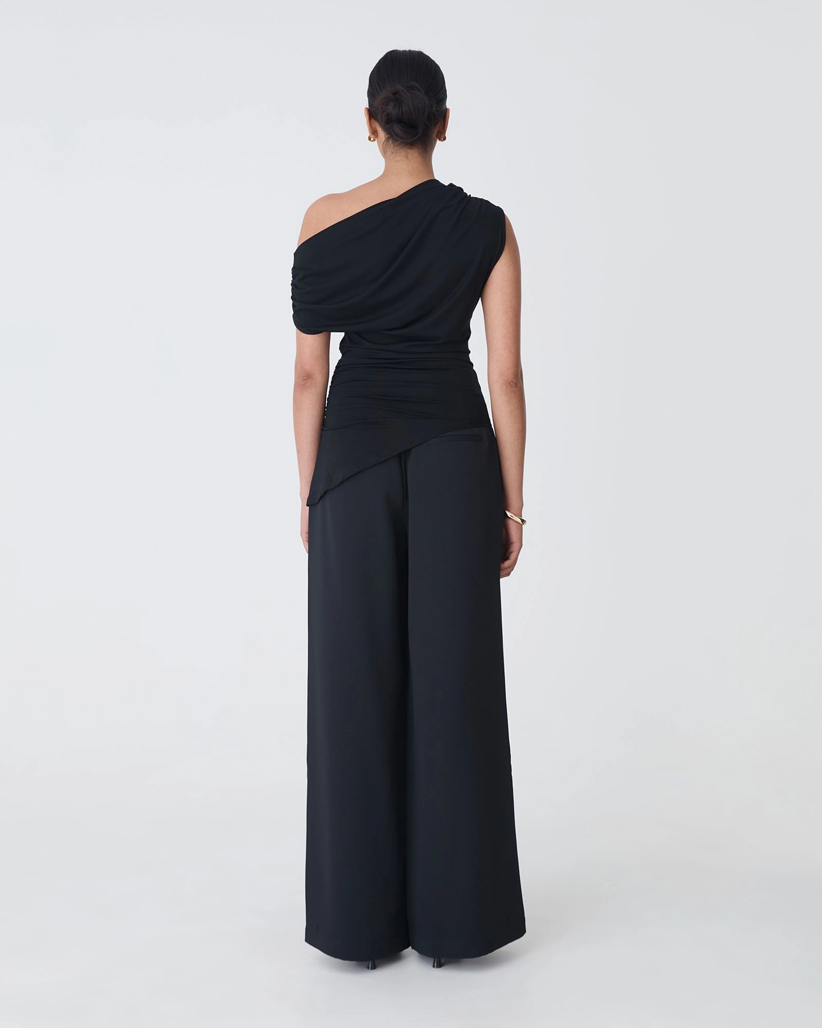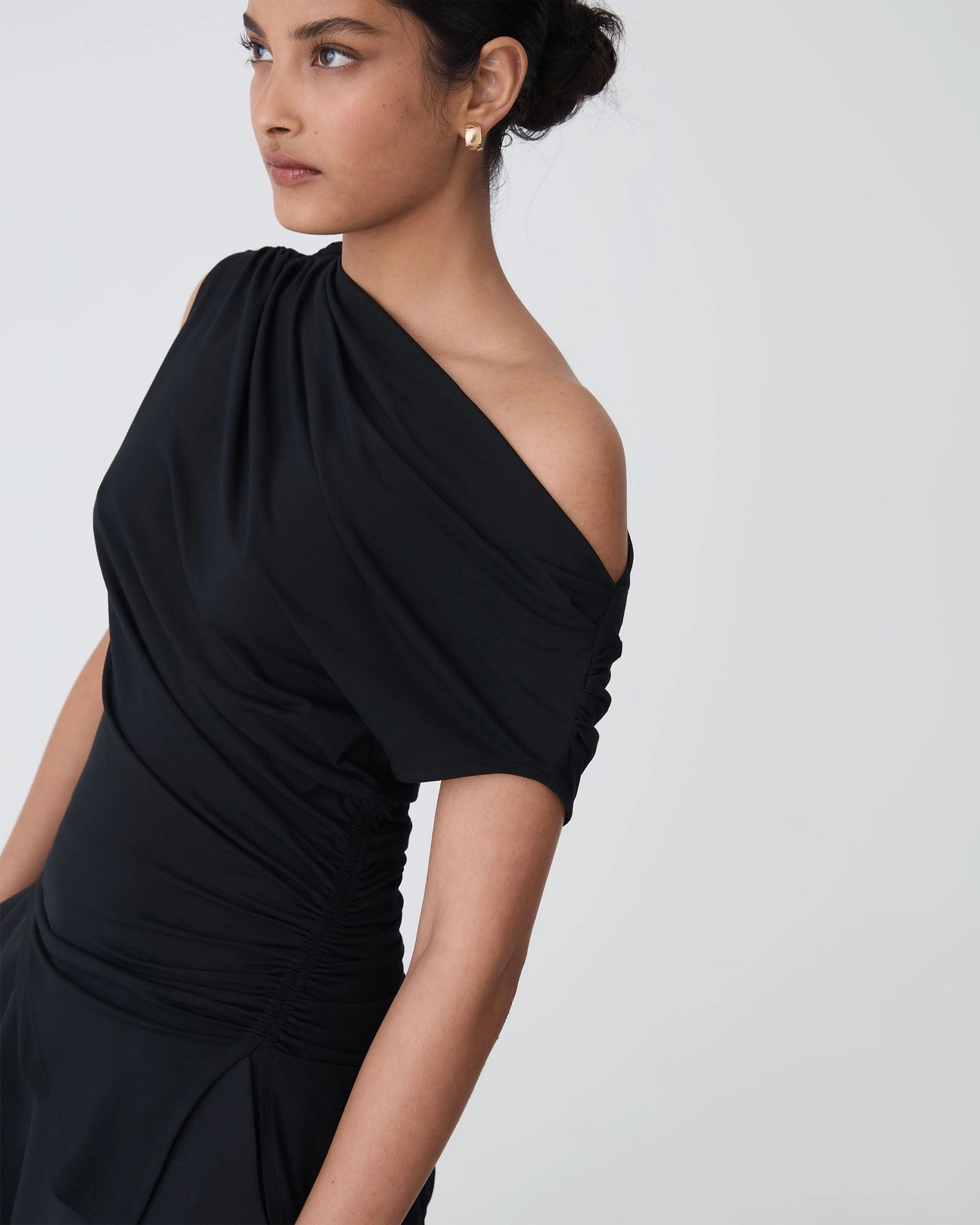 The Keeley Bamboo Split Hem Top an essential top blends modern asymmetry with comfort. Made from soft, breathable bamboo fabric, the top features a draped neckline, ruching details and a side split at the hem for a figure-flattering fit. Wear it two ways—on the shoulder with a relaxed boat neckline, or off the shoulder for a chic one-shoulder look.
