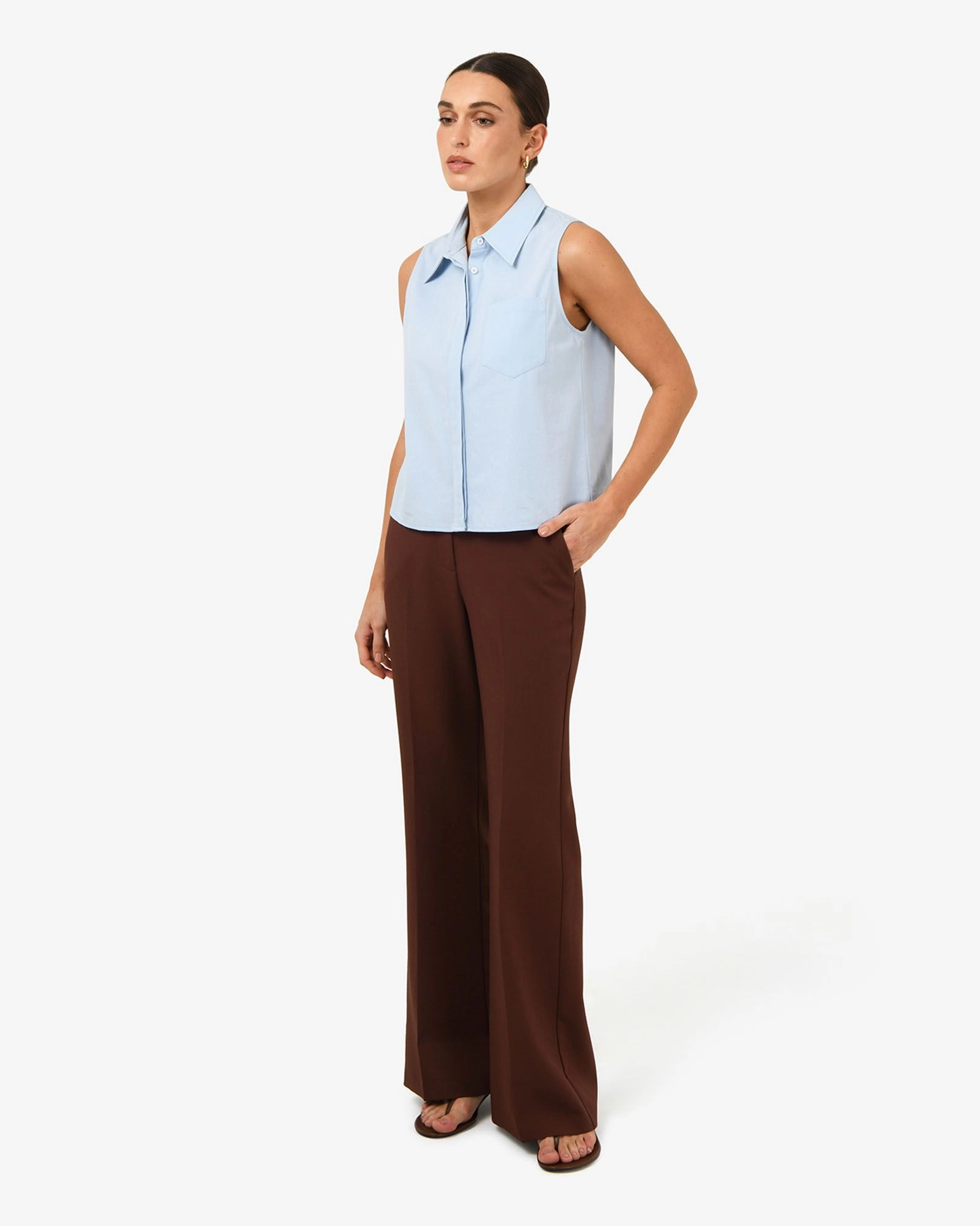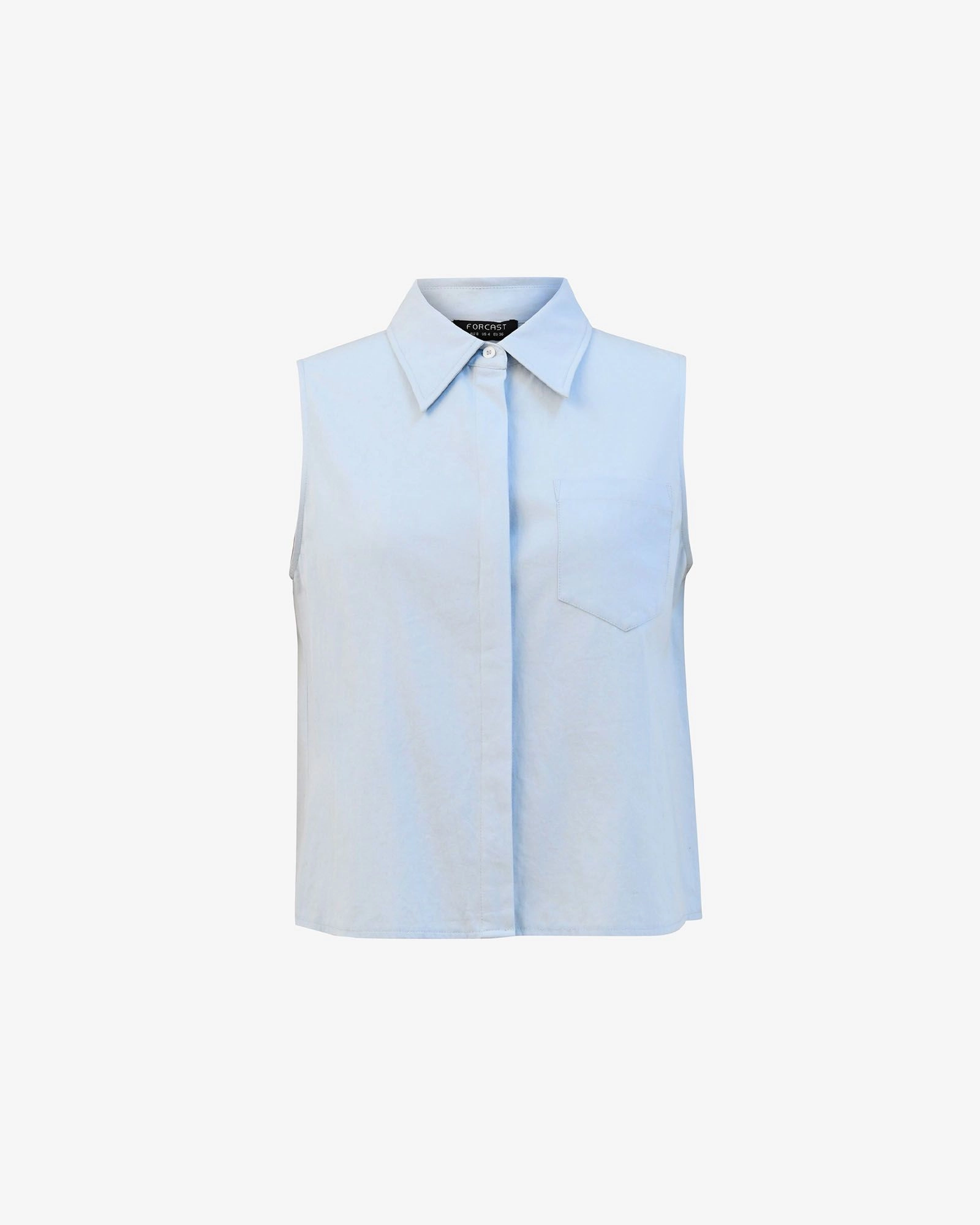 Introducing the Kia Cotton Sleeveless Shirt, an essential wardrobe staple. Made from breathable cotton, it features a sleeveless cut, pointed collar, and classic button-down front. Finished with a chest patch pocket and a relaxed fit, this all-round shirt pairs easily with denim, pants, or layered under a jacket.