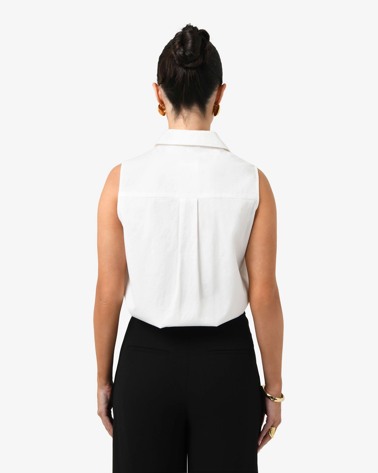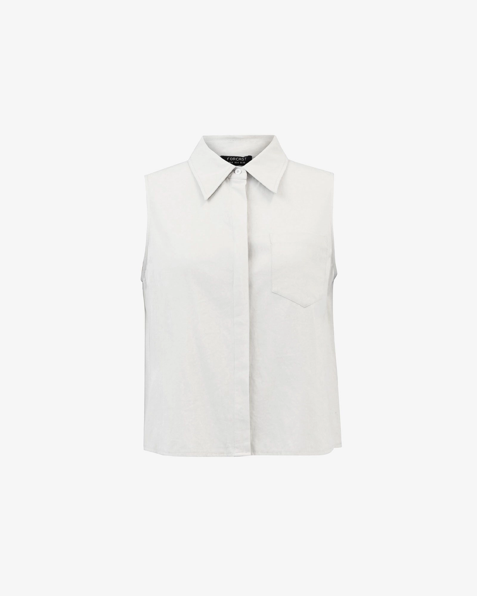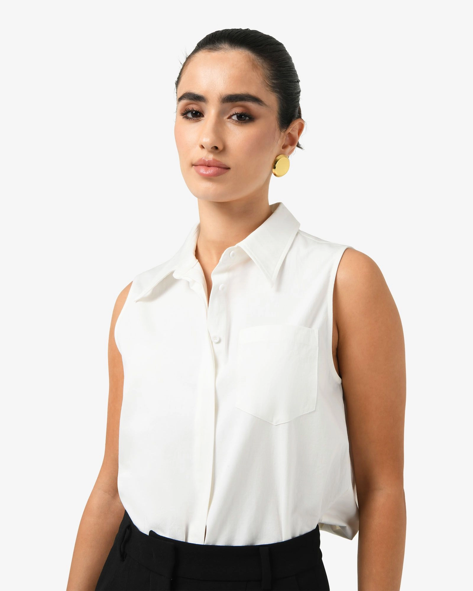 Introducing the Kia Cotton Sleeveless Shirt, an essential wardrobe staple. Made from breathable cotton, it features a sleeveless cut, pointed collar, and classic button-down front. Finished with a chest patch pocket and a relaxed fit, this all-round shirt pairs easily with denim, pants, or layered under a jacket.