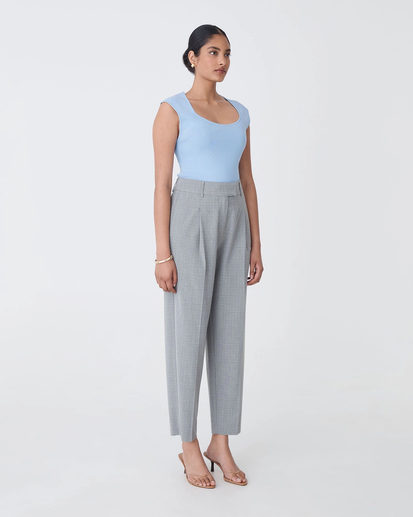 A sleek, minimalist staple for your capsule wardrobe, the Kingsley Knit Top features a square-scoop neckline and extended cap shoulders for a polished take on the classic tank. Designed in a fine-gauge knit, it offers a smooth, body-hugging fit that tucks neatly into high-waisted bottoms and works beautifully under blazers or as a standalone statement.