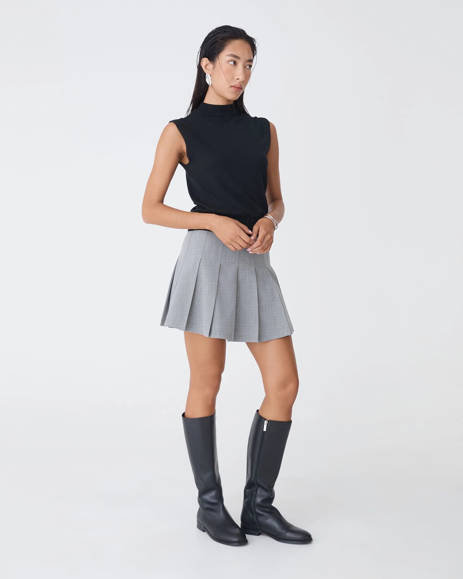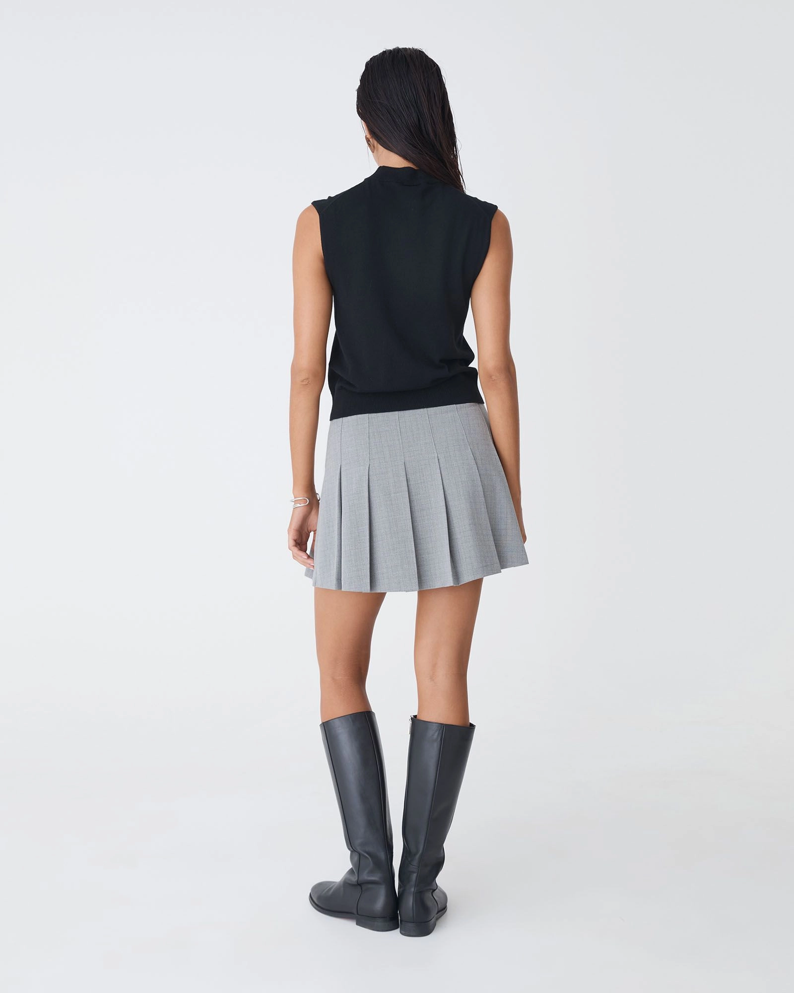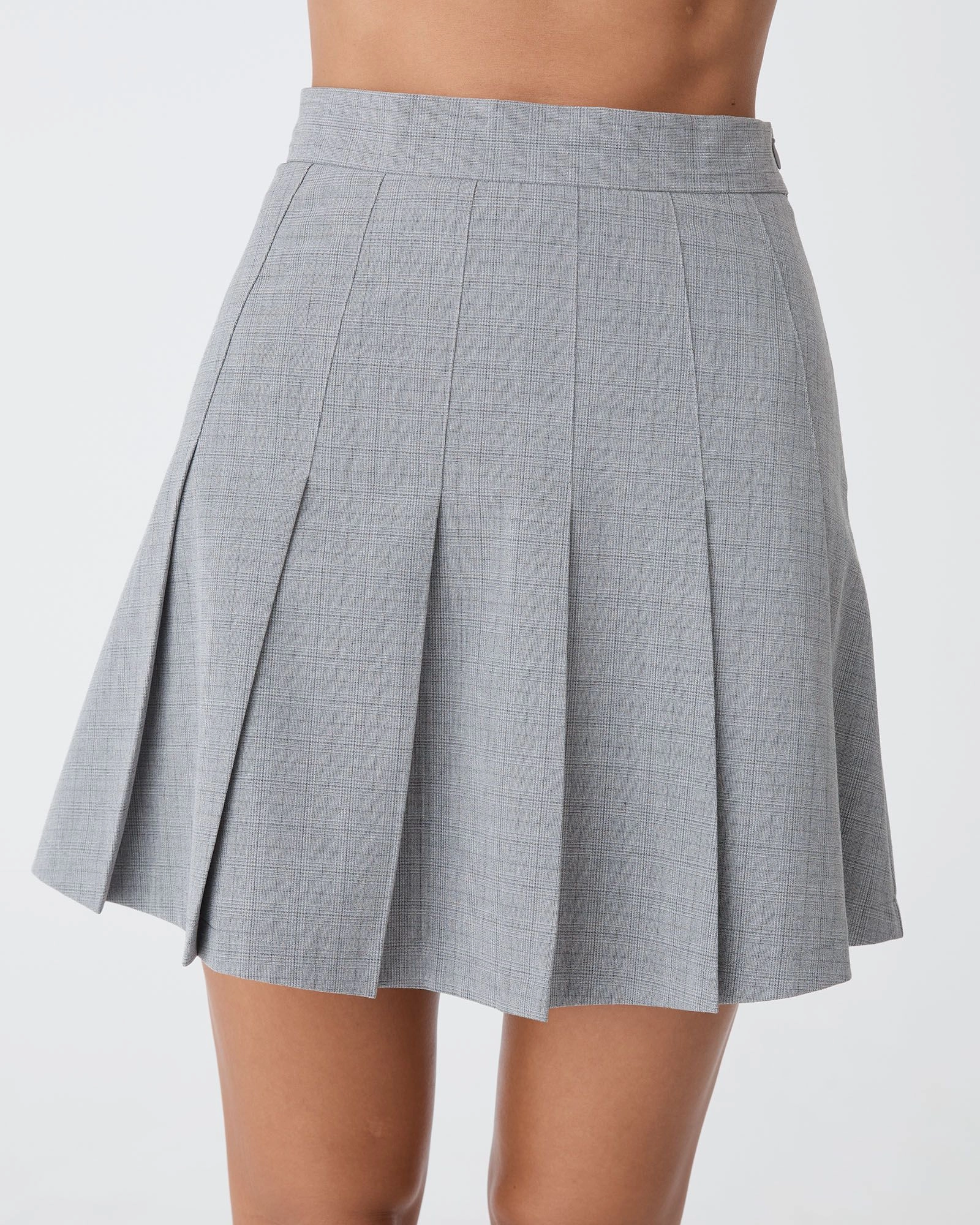 The Kris Pleated Mini Skirt features knife pleats and a fixed waistband for a polished, tailored look. Designed in a grey glen check pattern, it is mini in length, with a concealed side-zip closure, and fully lined. Style with a fitted top or with the matching Kris Tailored Vest for a co-ordinated look.