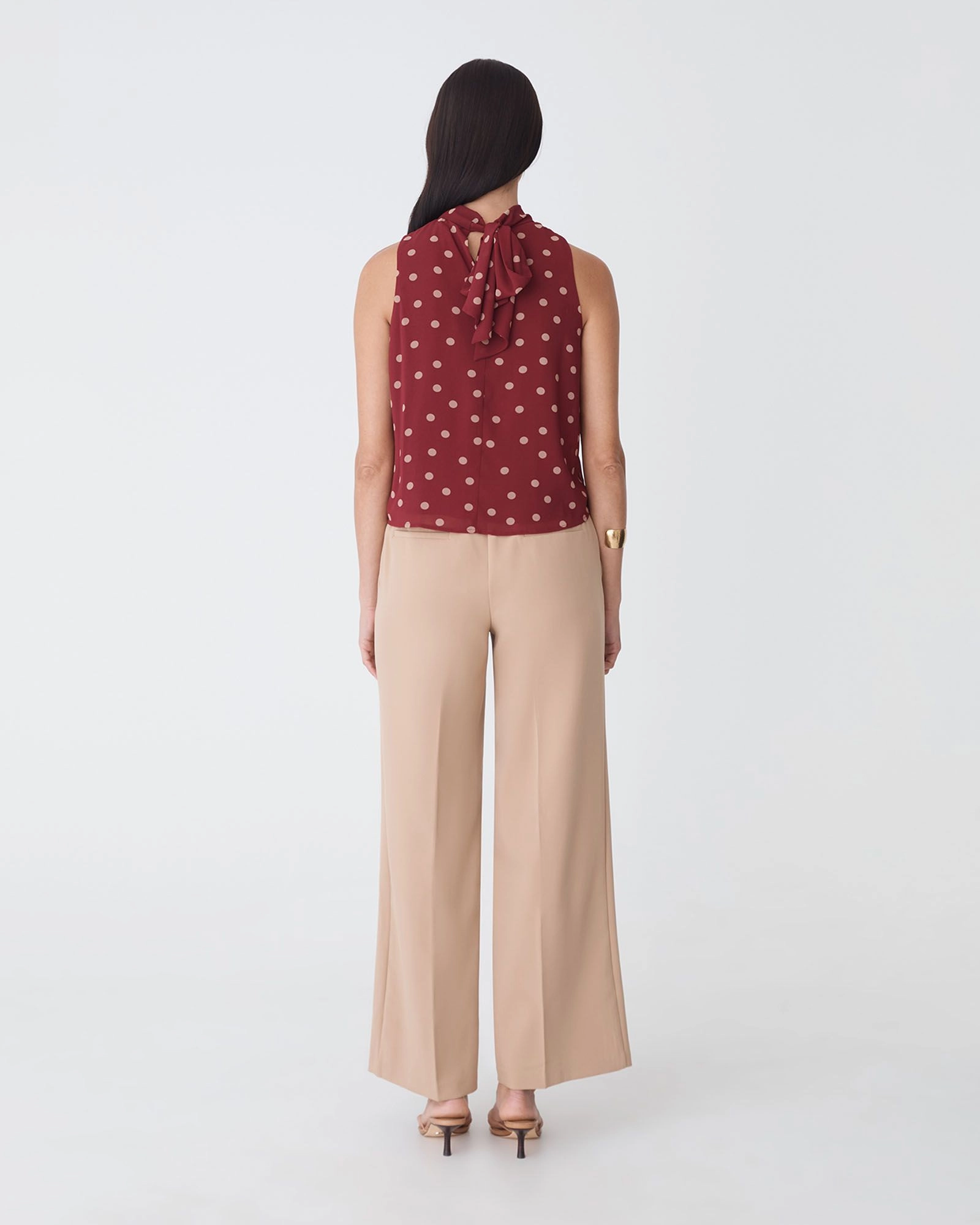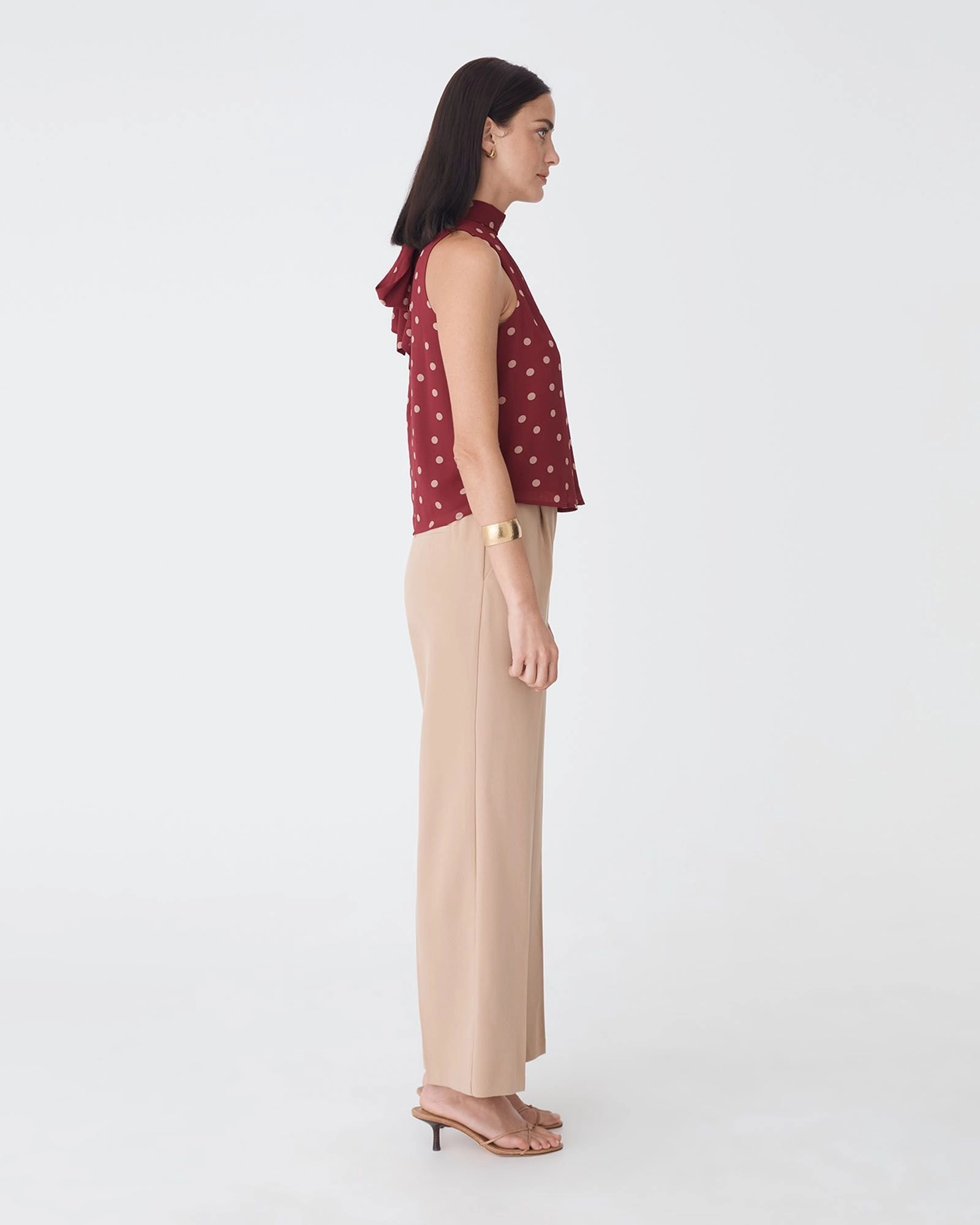 The Lottie Printed Tie Neck Top is a polished piece designed to take you from work to evening with ease. It features a sleeveless cut, a high neckline with a self-tie bow and keyhole detail at the back. Pair it with tailored trousers for a polished office look, or tuck it into pants and skirts. Style with gold jewellery to highlight warm tones of the print.