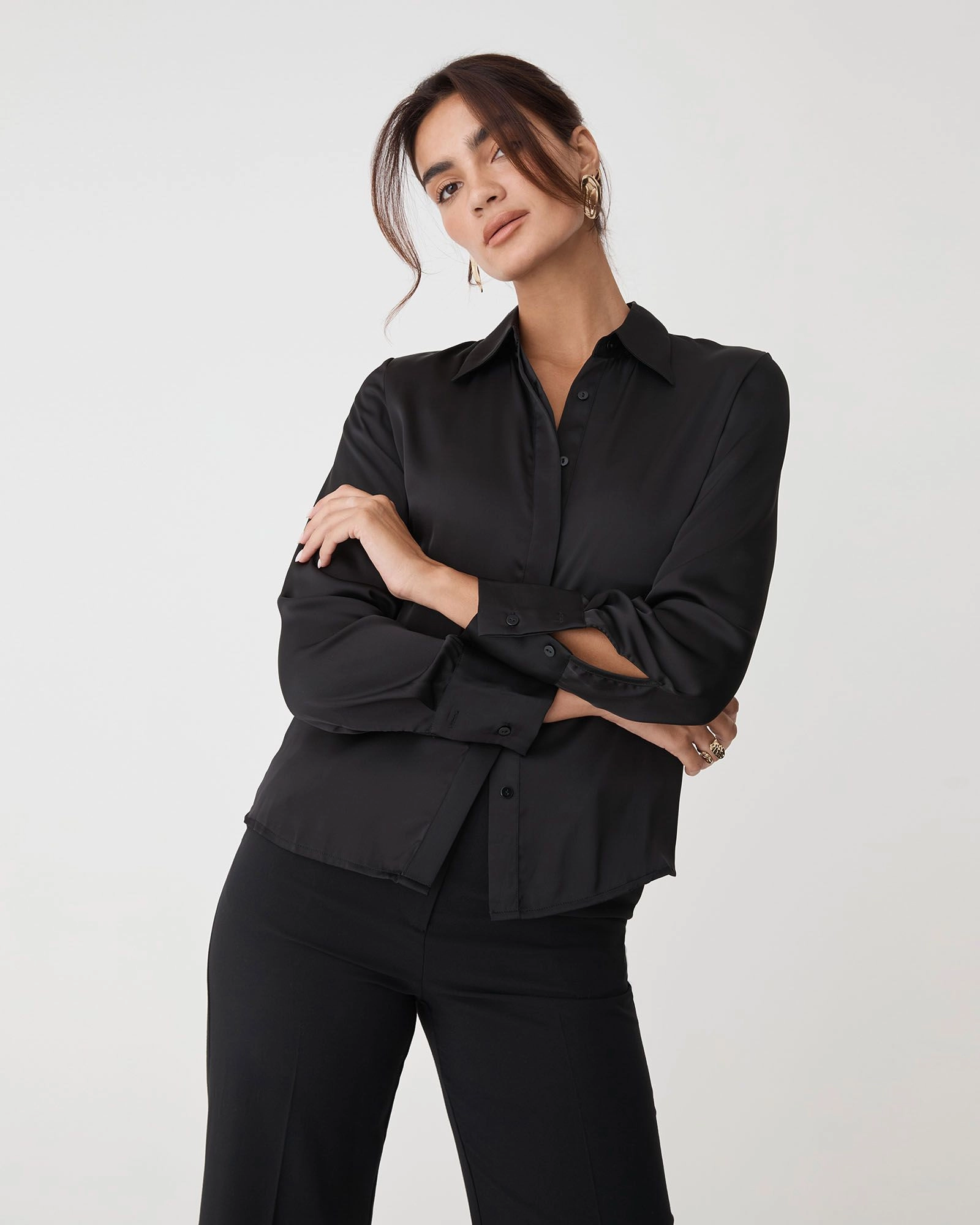 The Mae Satin Shirt is the satin shirt to invest in for your capsule wardrobe. Discover a newfound effortless elegance with Mae’s smooth satin finish and relaxed fit. This shirt adds a touch of luxe to any look. Perfect for day or night, it’s a versatile wardrobe staple that shines in every setting.