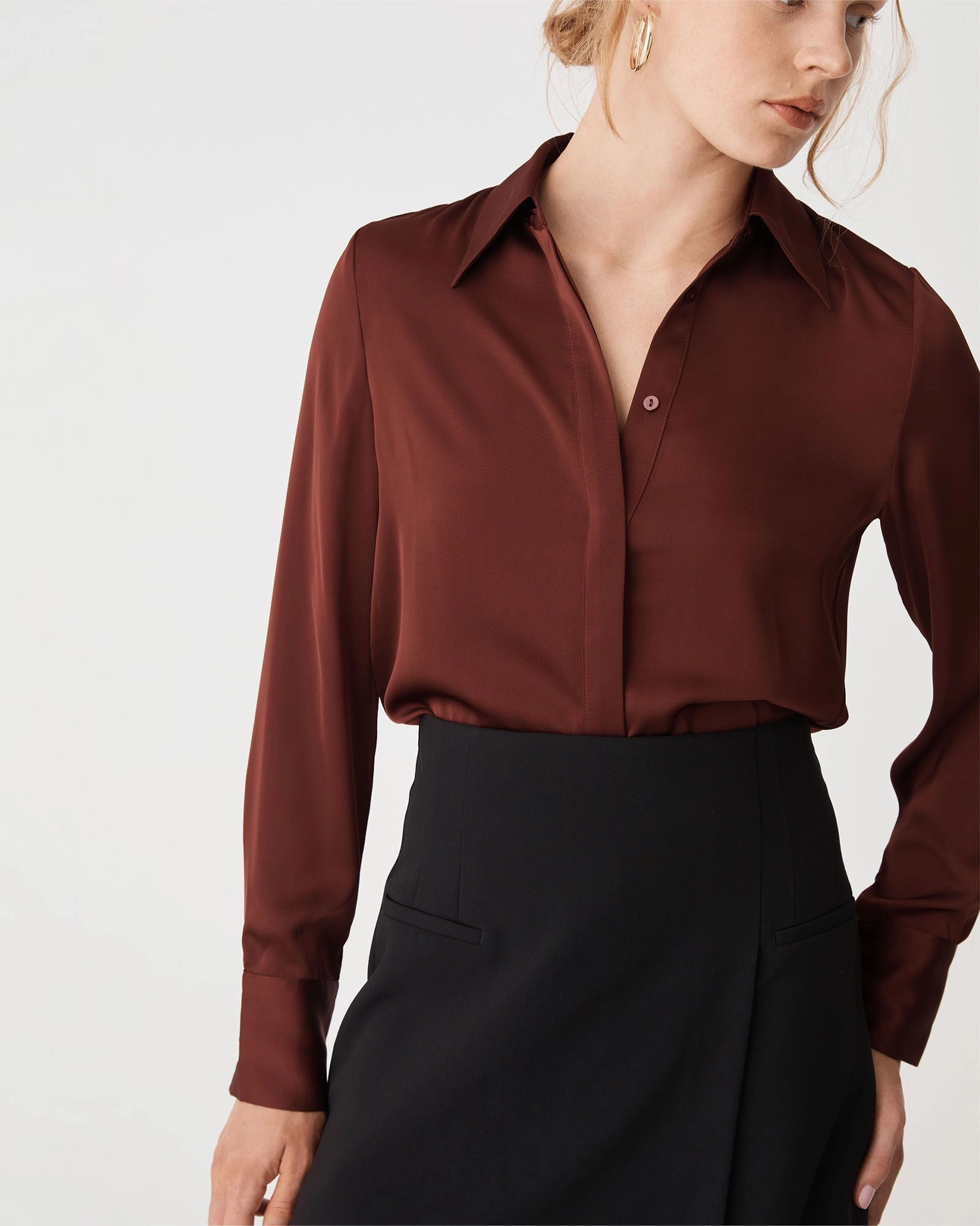 The Mae Satin Shirt is the satin shirt to invest in for your capsule wardrobe. Discover a newfound effortless elegance with Mae’s smooth satin finish and a relaxed fit. This shirt adds a touch of luxe to any look. Perfect for day or night, it’s a versatile wardrobe staple that shines in every setting.