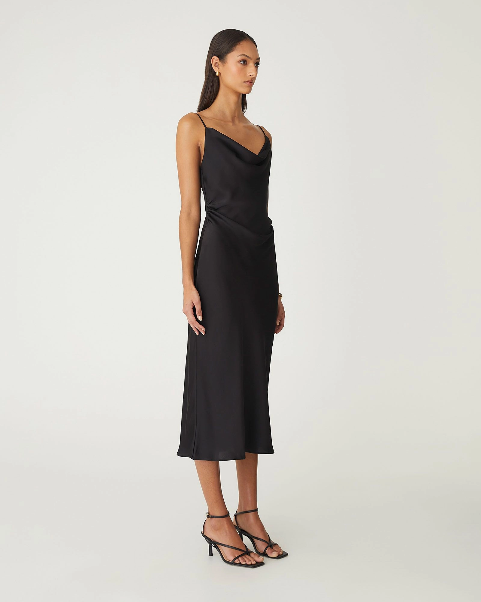 Elevate your special occasions with the Mae Side Ruched Satin Dress . Designed in a luxurious satin finish, the side ruched detail effortlessly enhances your silhouette, while its sleek design offers a touch of understated glamour. Style with statement accessories to complete your look.