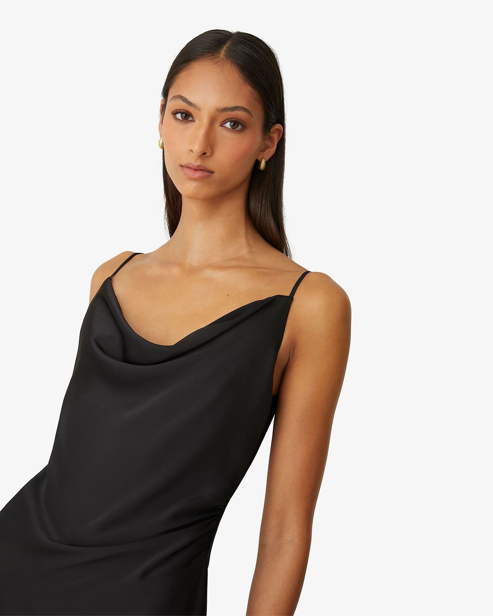 - Cowl neckline and low back