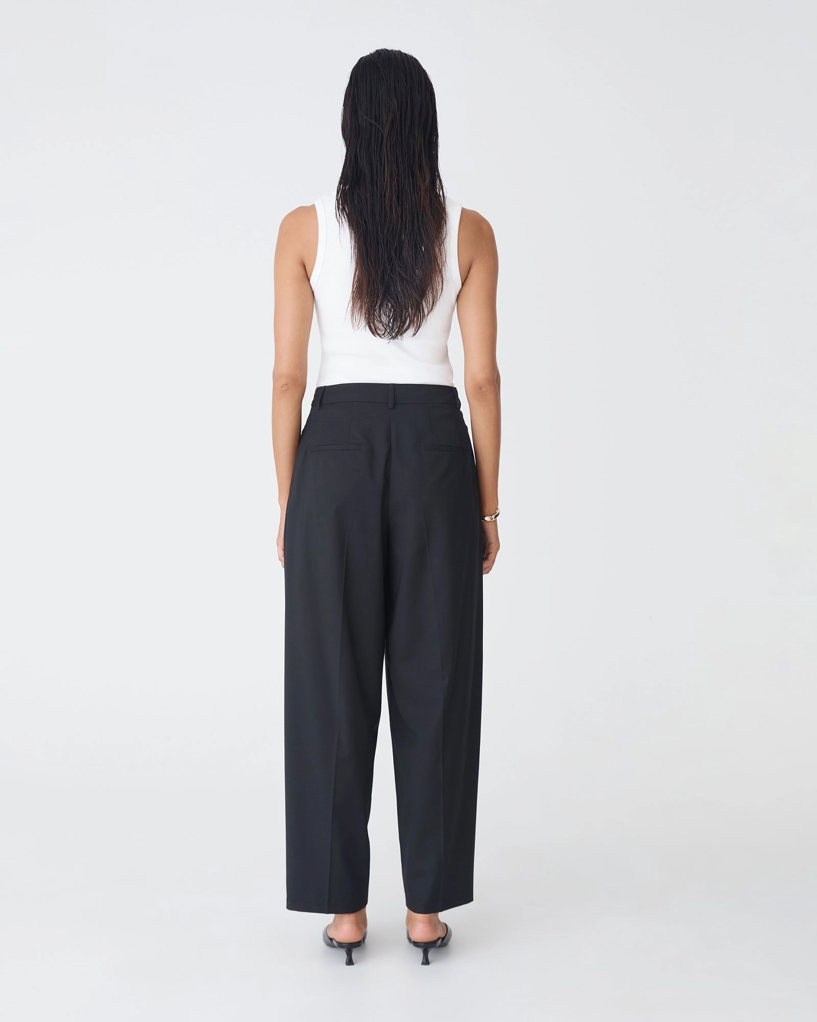 Remaining timeless and sophisticated, the Matilda Relaxed Barrel Pants is designed for all-day comfort with a stylish edge. Featuring a fixed waistband with front double pleats, concealed zip fly and functional side pockets, they are finished in a relaxed barrel-leg silhouette. Pair with fitted tops and statement accessories to complete the look.