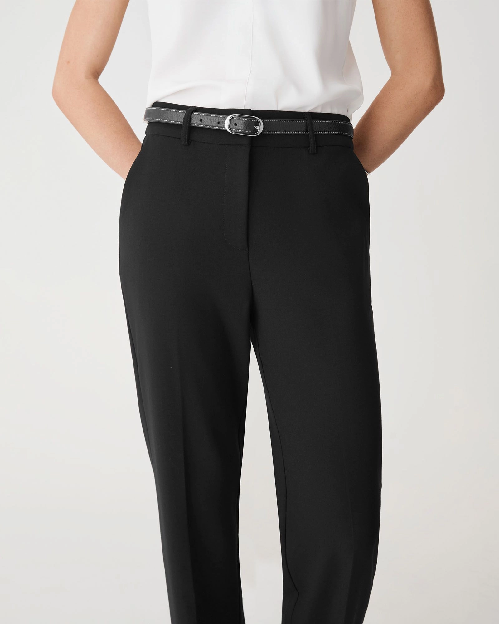 - Fixed waistband with belt loops