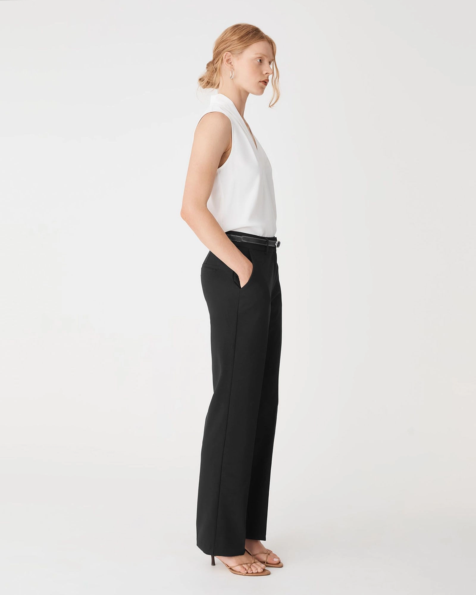 Smart and sleek, your everyday power pants. The Merid Tailored Pants bring ease to professional dressing with a clean, straight-leg silhouette structured feel. Featuring a fixed waistband, belt loops, and functional pockets, pair them with the matching Merid Double Breasted Blazer for a sharp set, or dress them down with a relaxed knit and loafers for effortless weekday style.